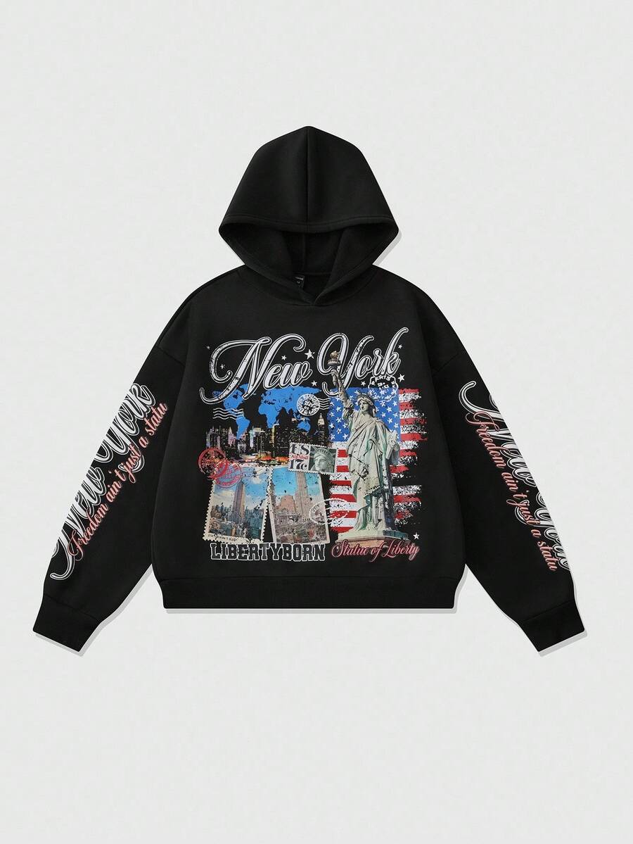 Street Life Herren Retro Grafik Hoodie, locker geschnittener Crop-Fit, Herbst