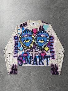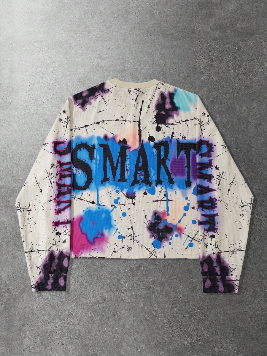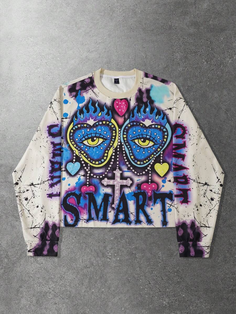 Street Life Herren Retro Grafik Muster Loose Crop Langarm T-Shirt
