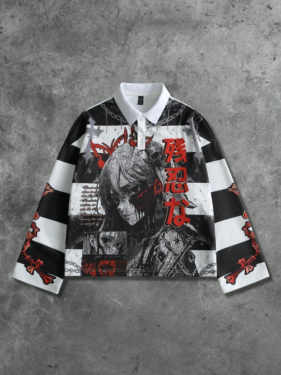 Street Life Herren Retro Jungfrau Maria gestreifter englischer Grafik-Muster Street Style Pullover Sweatshirt