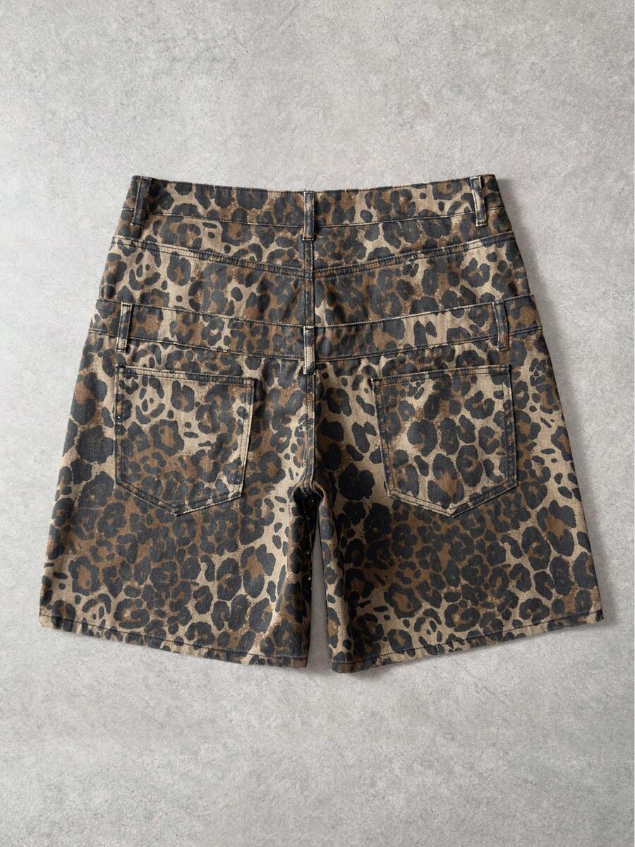 Street Life Herren Denim Shorts mit Leopardenmuster und Strass-Verzierung