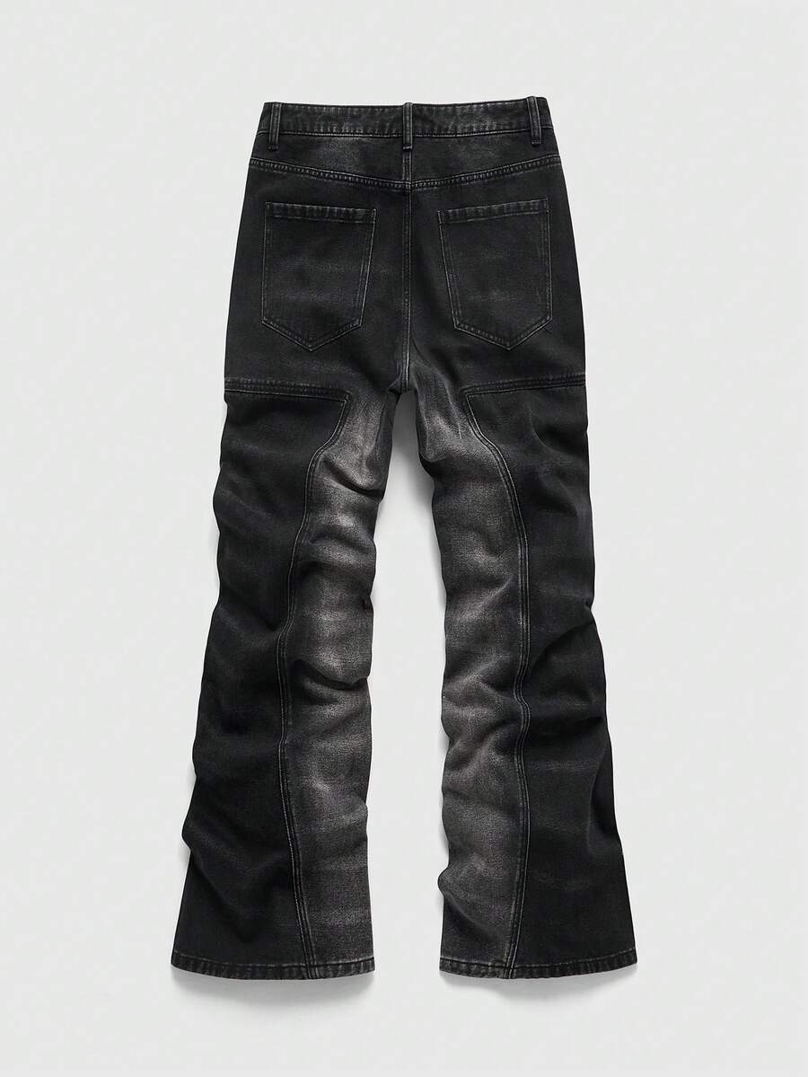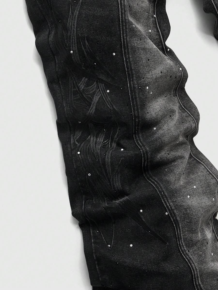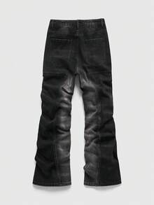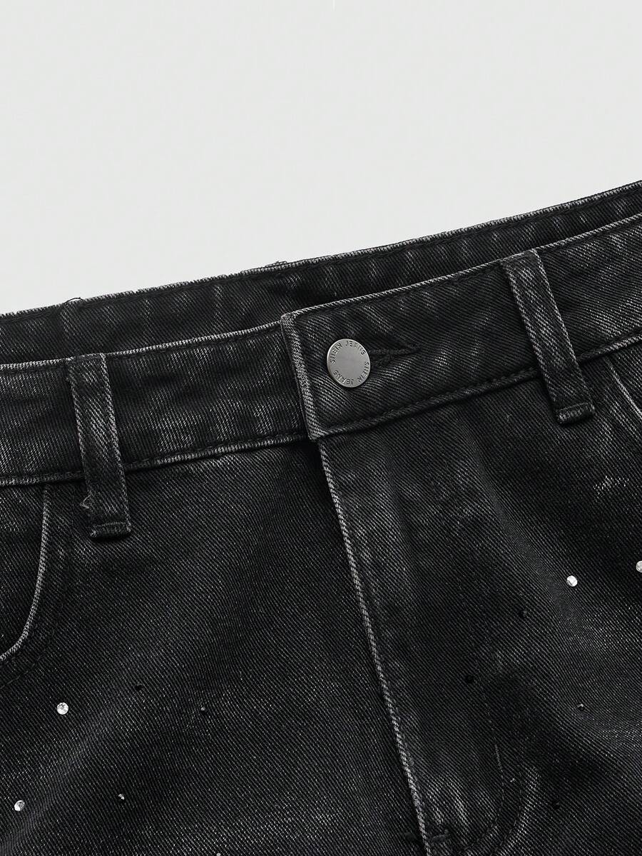 Street Life Herren Jeans mit Strass-Verzierung, plissierter Tasche und weitem Bein, Lässig