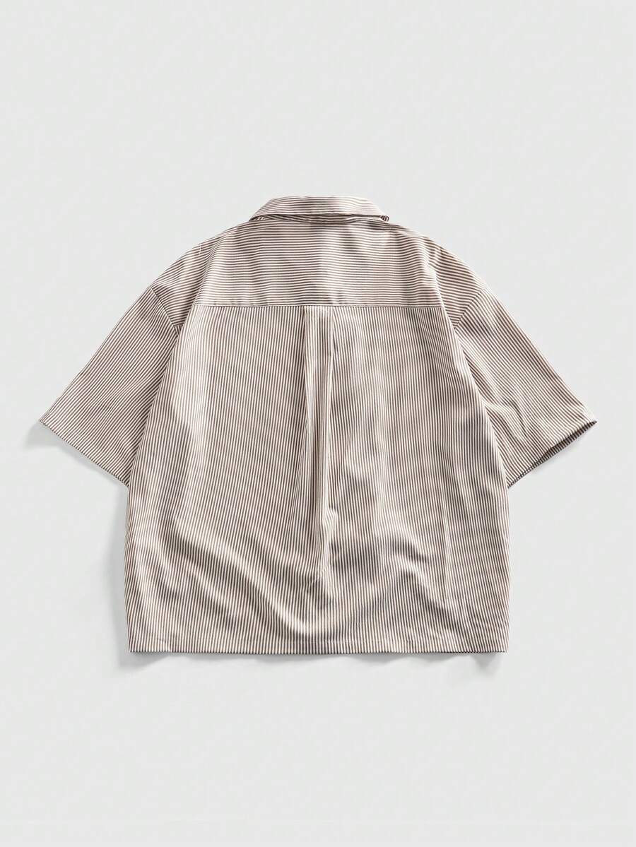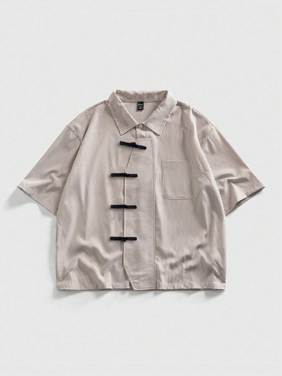 Street Life Herren Kurzarm gestreiftes Hemd mit Knopfleiste, lässiger Retro-Stil mit schräger Knopfleiste