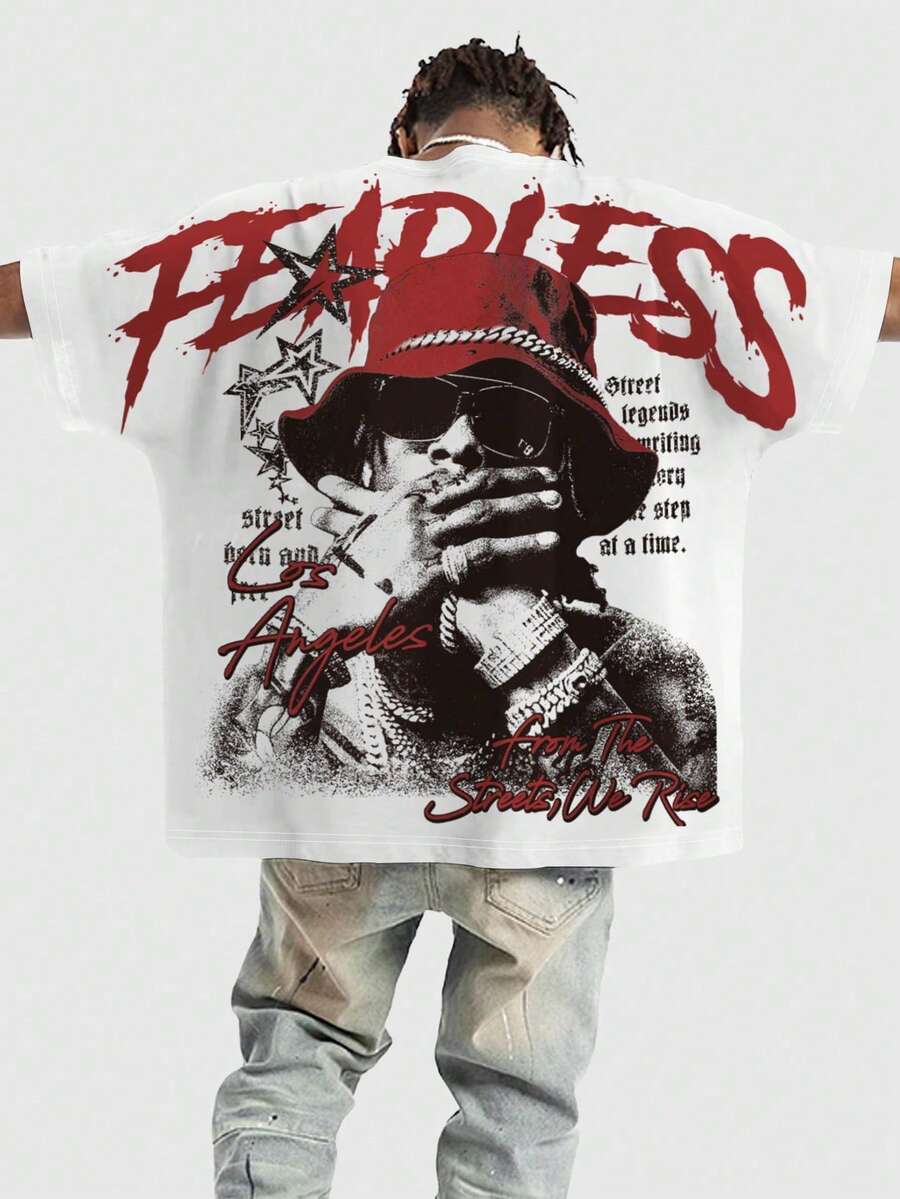 Street Life Herren Slogan- & Figurenprint Rundhals Kurzarm Lässig vielseitiges T-Shirt