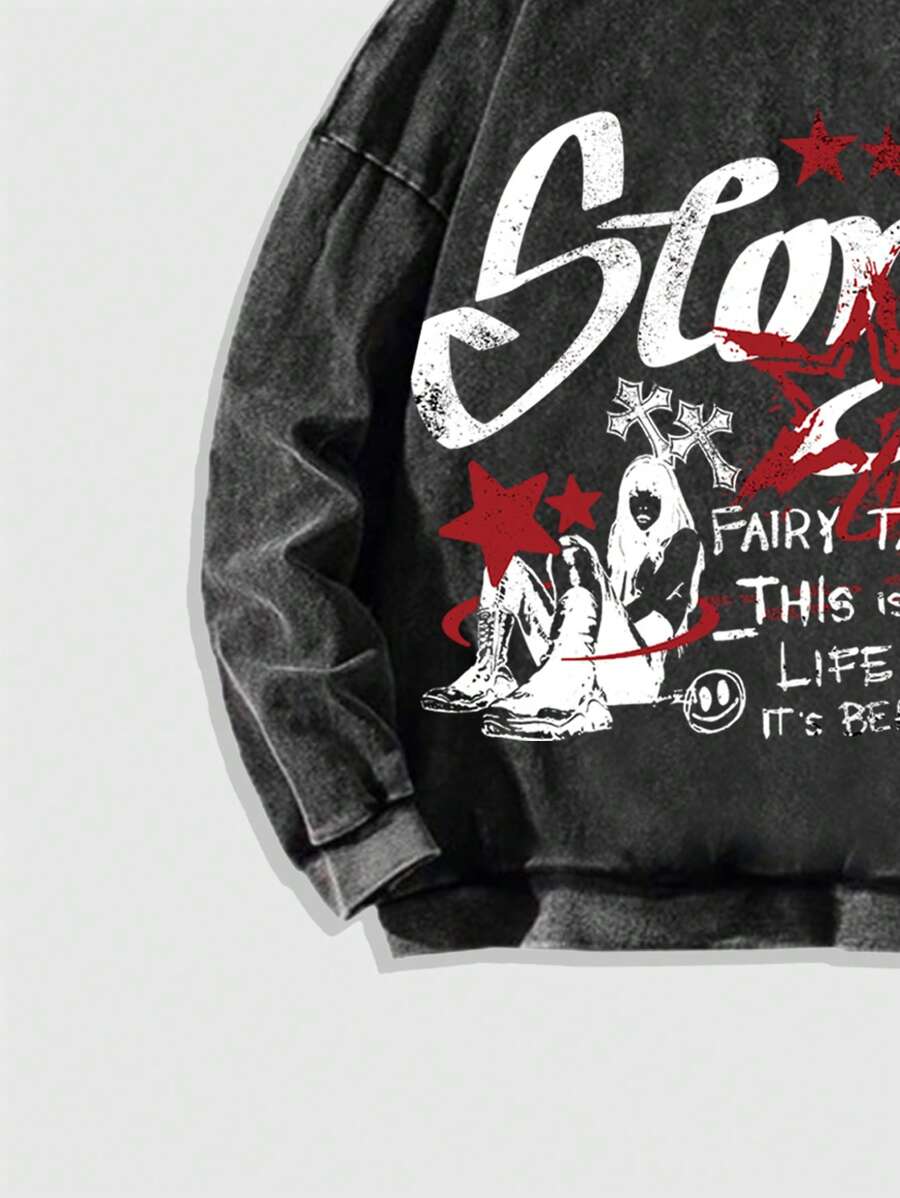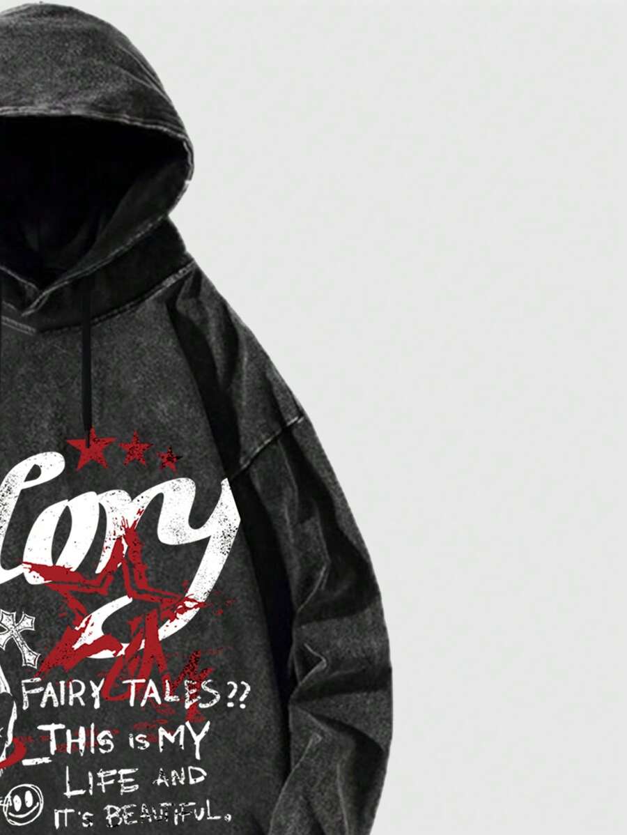 Street Life Herren Sweatjacke mit bedrucktem Slogan, thermisch gefüttert mit Kordelzug, Lässig geeignet für Herbst/Winter