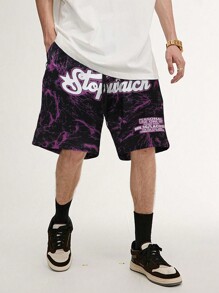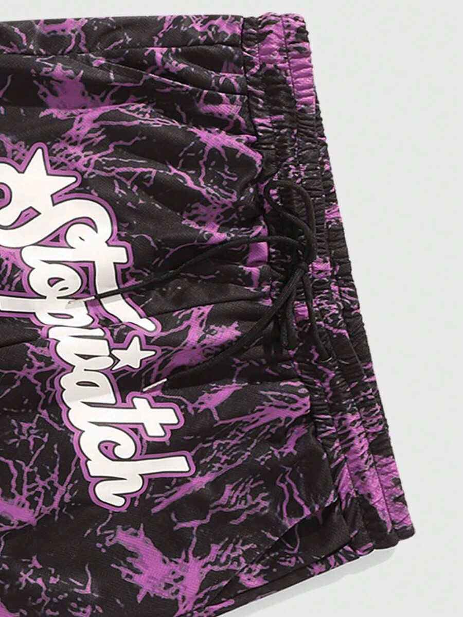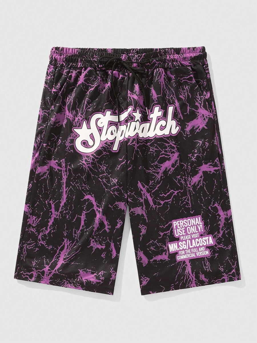 Street Life Herren Slogan Bedruckte Knielange Shorts Geeignet Für Frühling Und Sommer, Tägliches Tragen