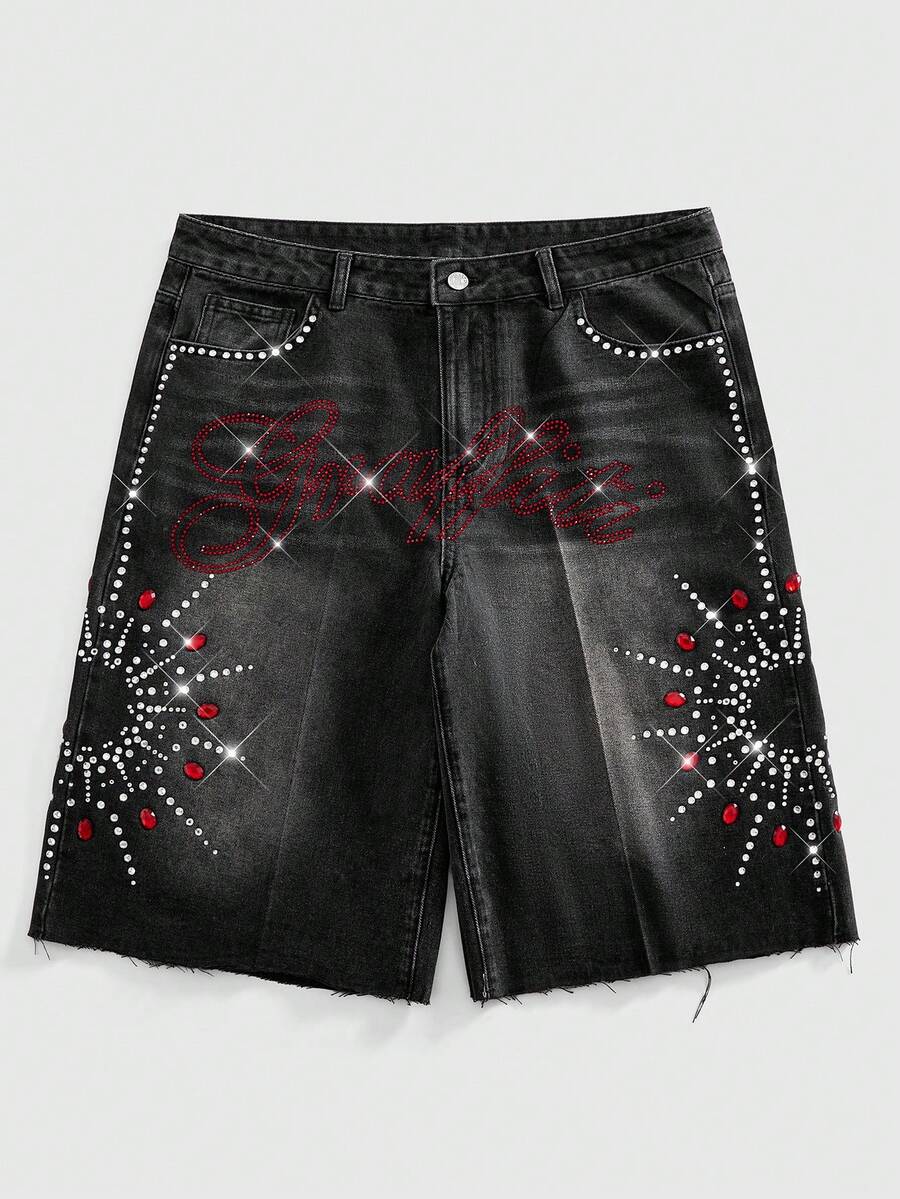 Street Life Herren Funkelnde Diamant Denim-Shorts