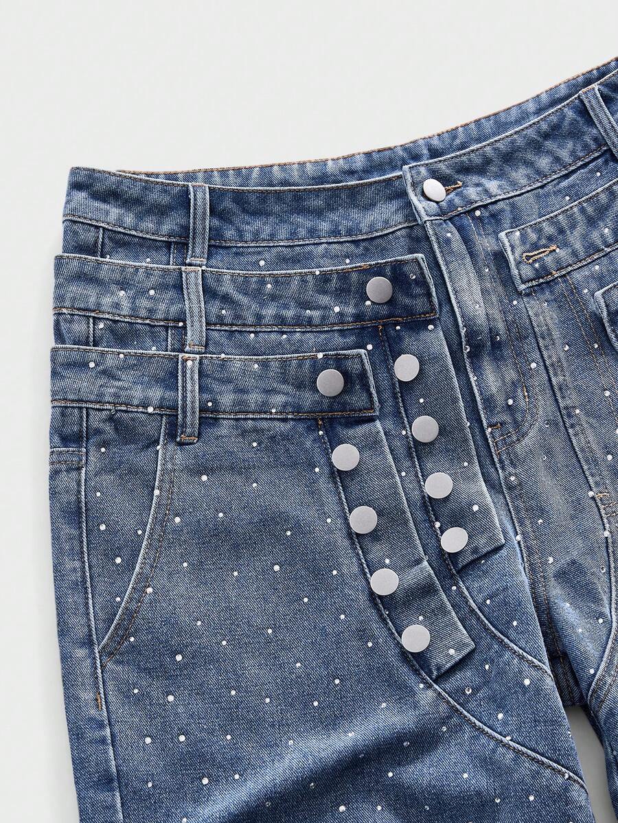 Street Life Herren Denim Shorts mit glitzernden Diamant-Verzierungen an 3-lagigem Bund