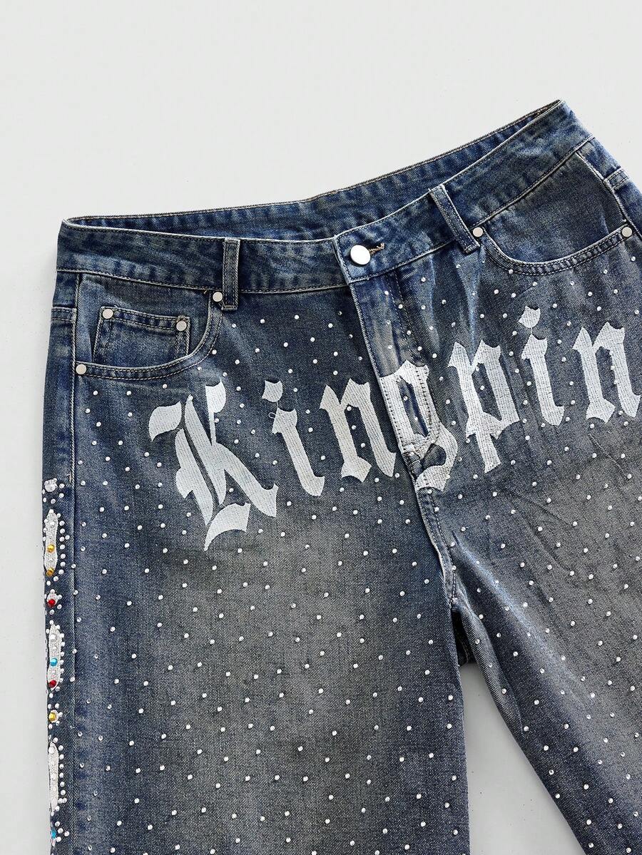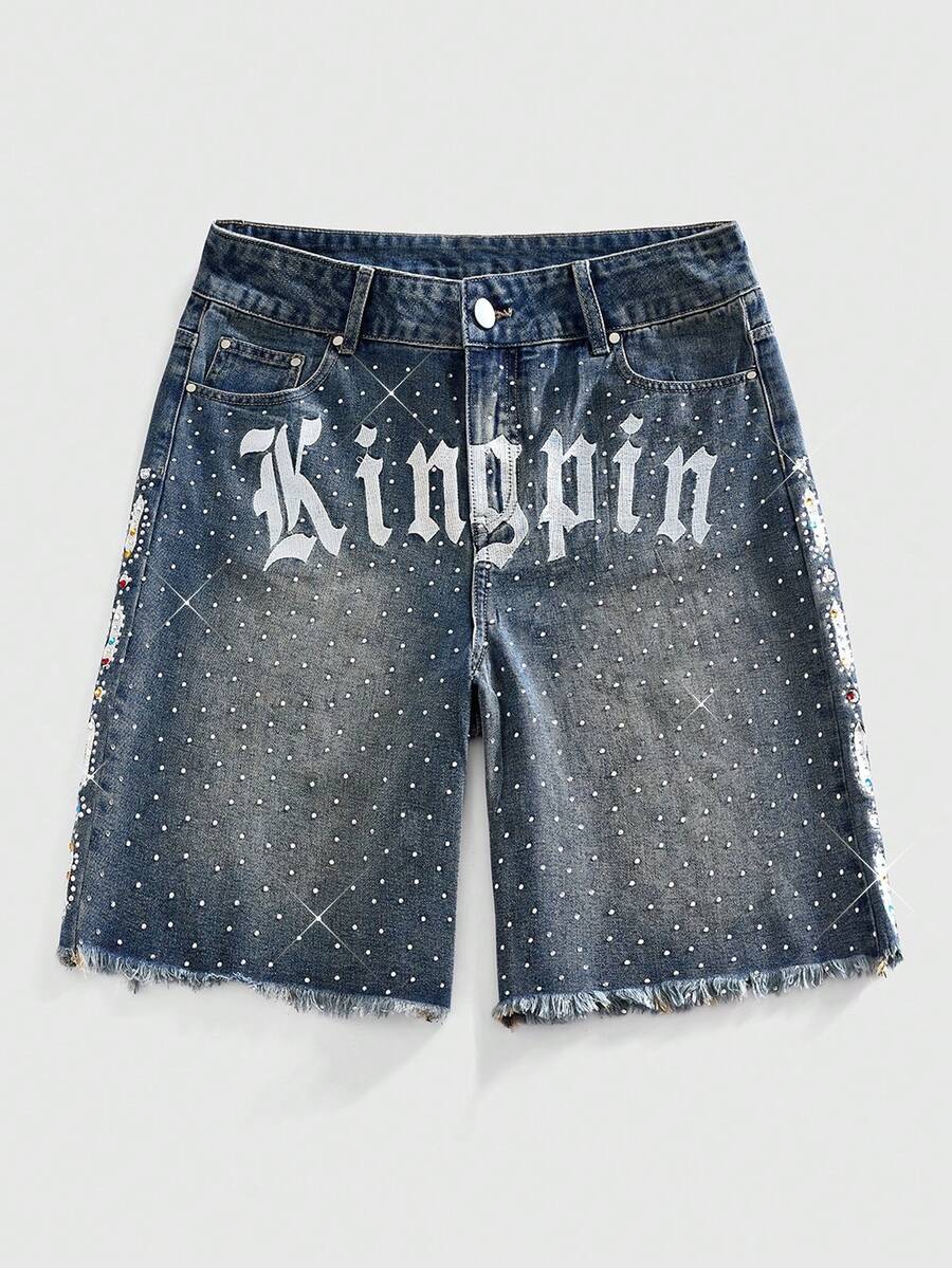 Street Life Herren Glitzernde Strass Jeans Shorts