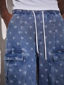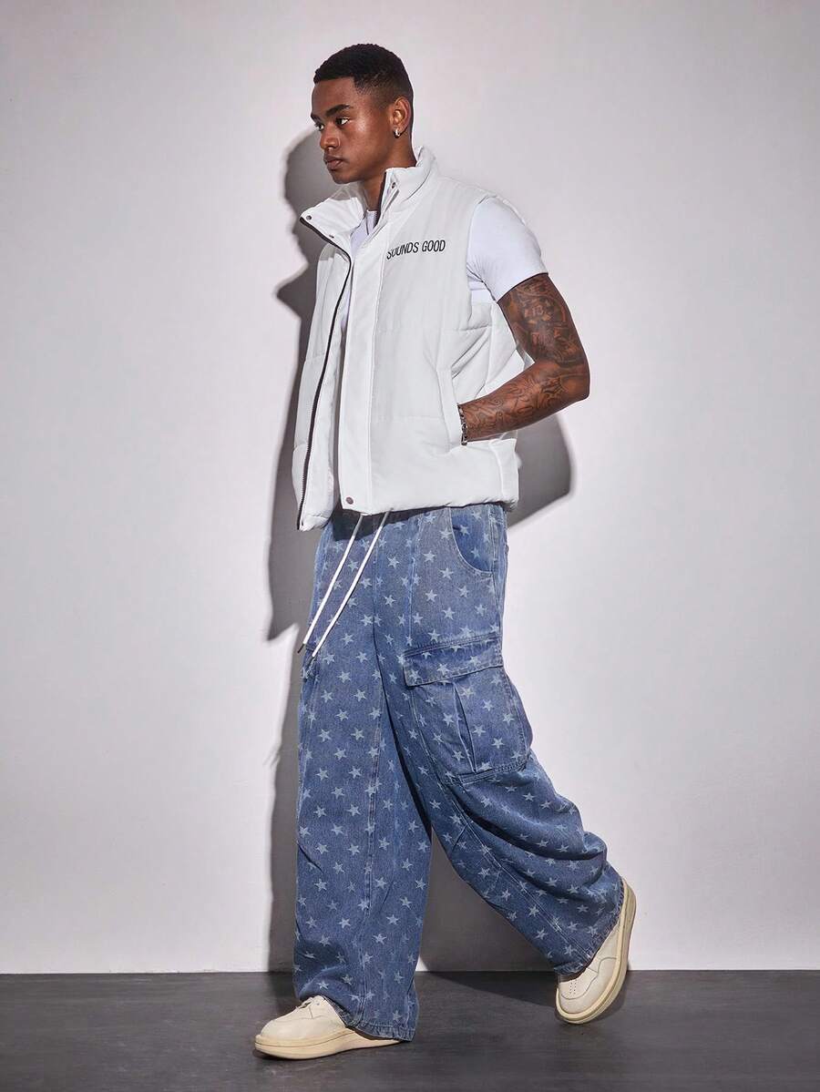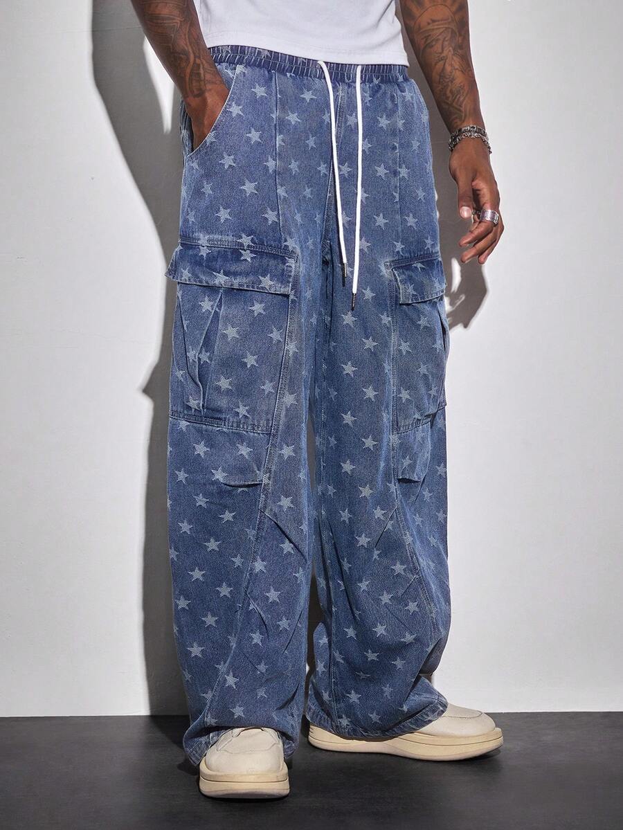 Street Life Herren Jeans mit Sternenmuster, Cargo-Taschen und Destroyed-Waschung
