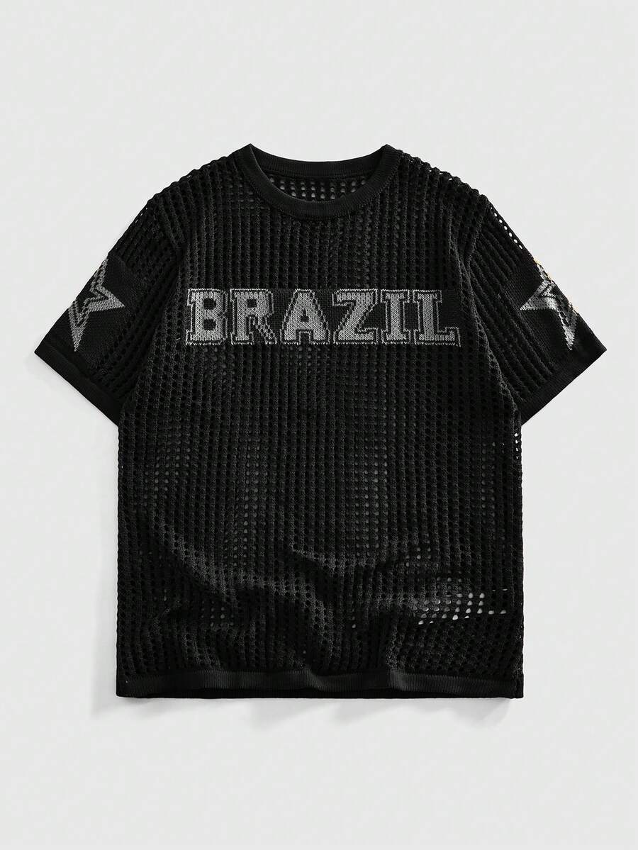 Street Life Herren Streetstyle Buchstaben Jacquard Hohlstrick Kurzarm Top