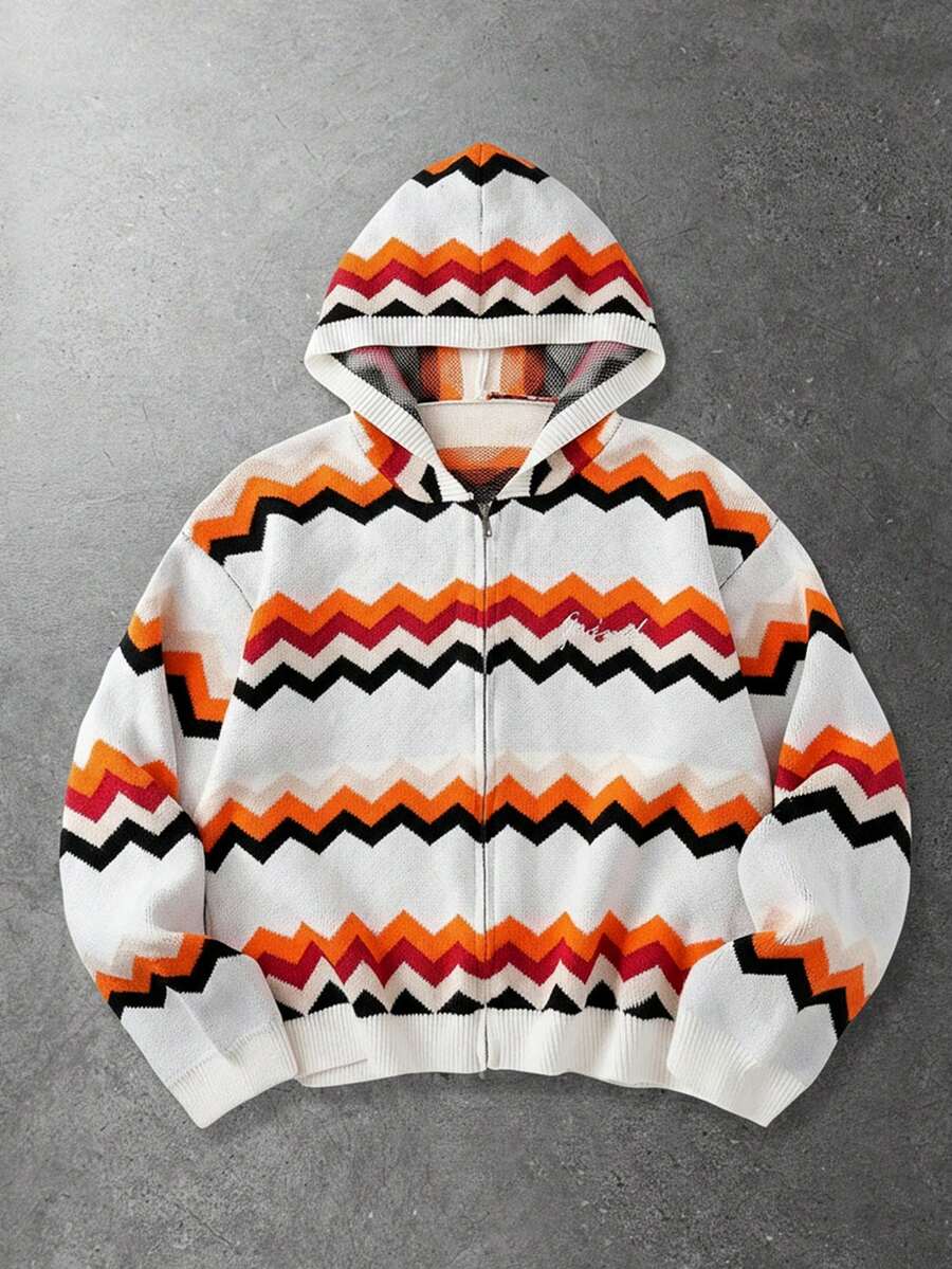Street Life Herren gestreifter Jacquard Kapuzenpullover