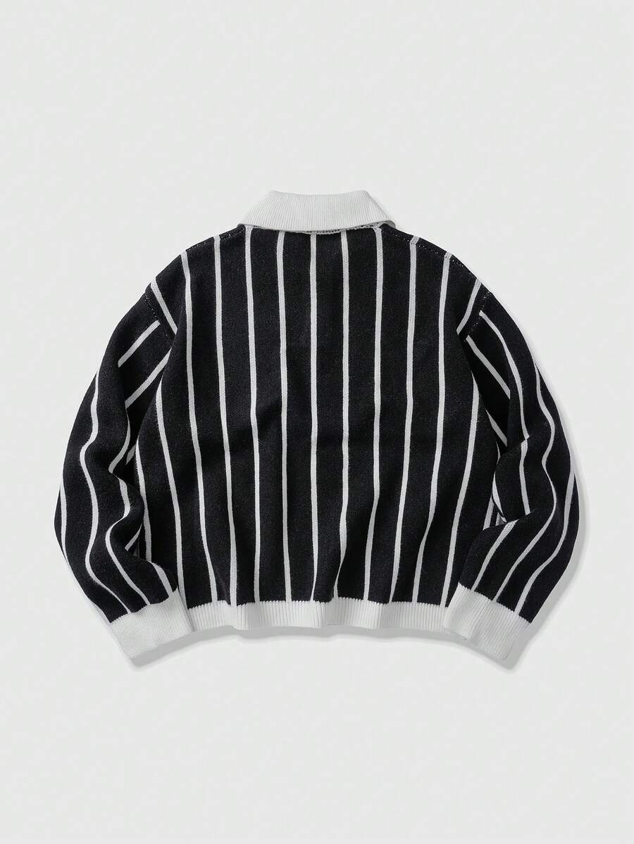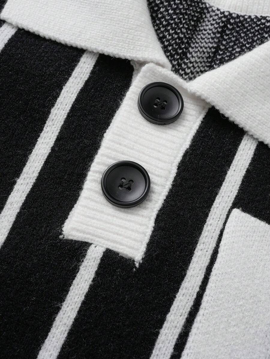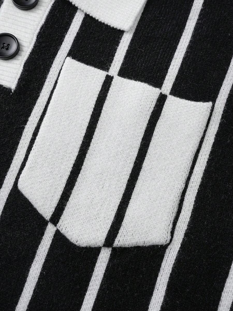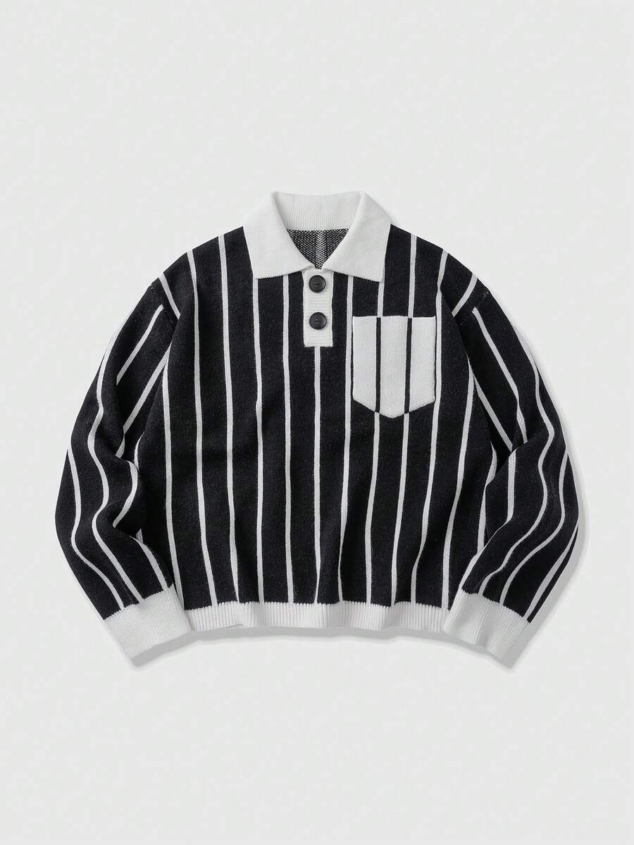 Street Life Herren gestreifter Polokragen Langarm Taschen Lässig Pullover, Herbst/Winter