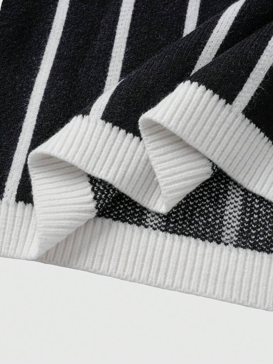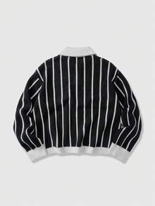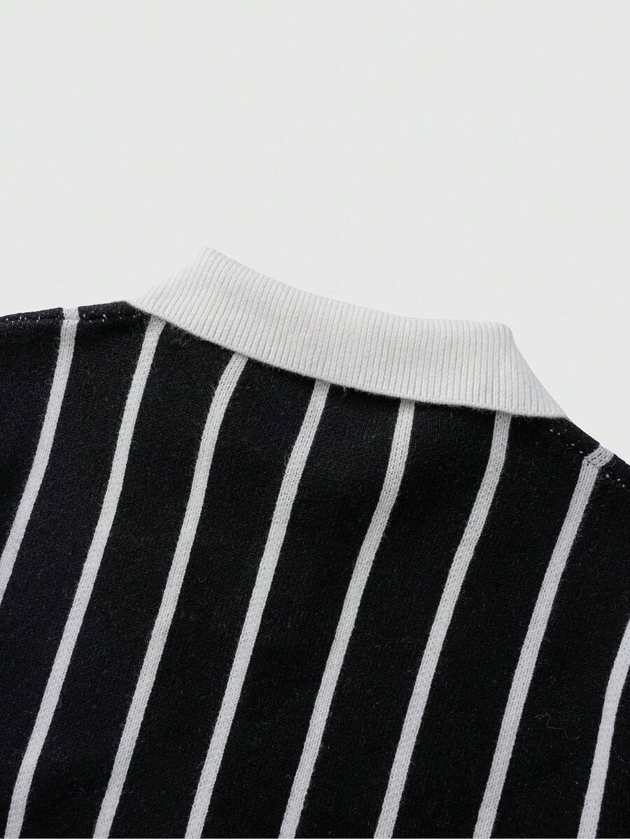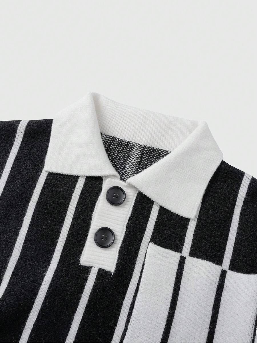 Street Life Herren gestreifter Polokragen Langarm Taschen Lässig Pullover, Herbst/Winter