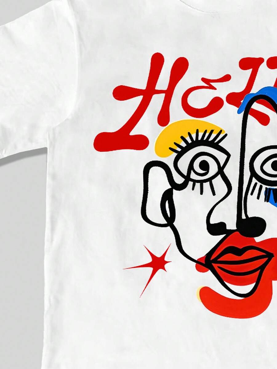 Street Life Herren Sommer T-Shirt mit abstraktem Gesichts-Grafik-Rundhalsausschnitt