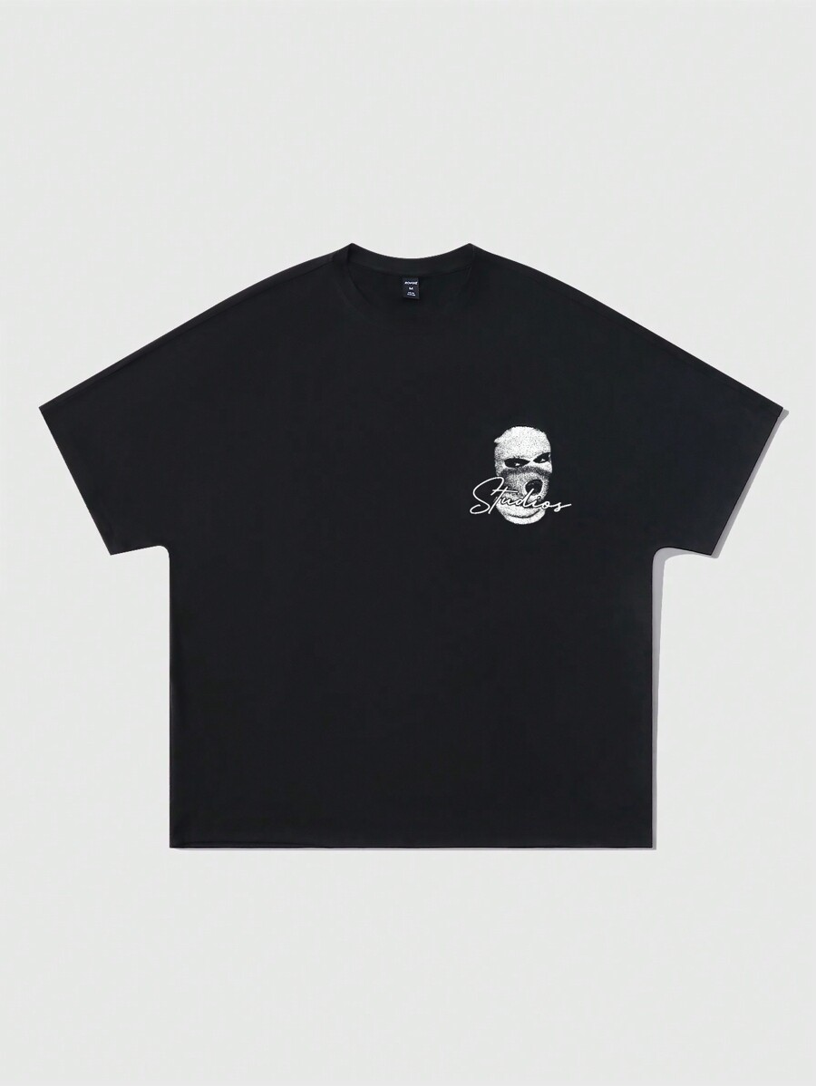 Street Life Herren Sommer Lässig Kurzarm T-Shirt mit Slogan Gesichtsmaske und Charakterdruck, Schule, 2000er Jahre Stil