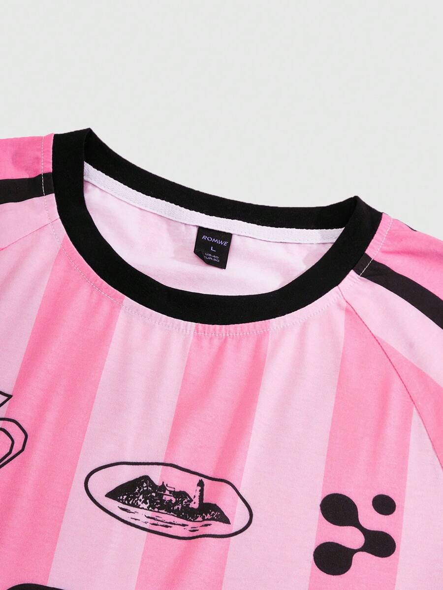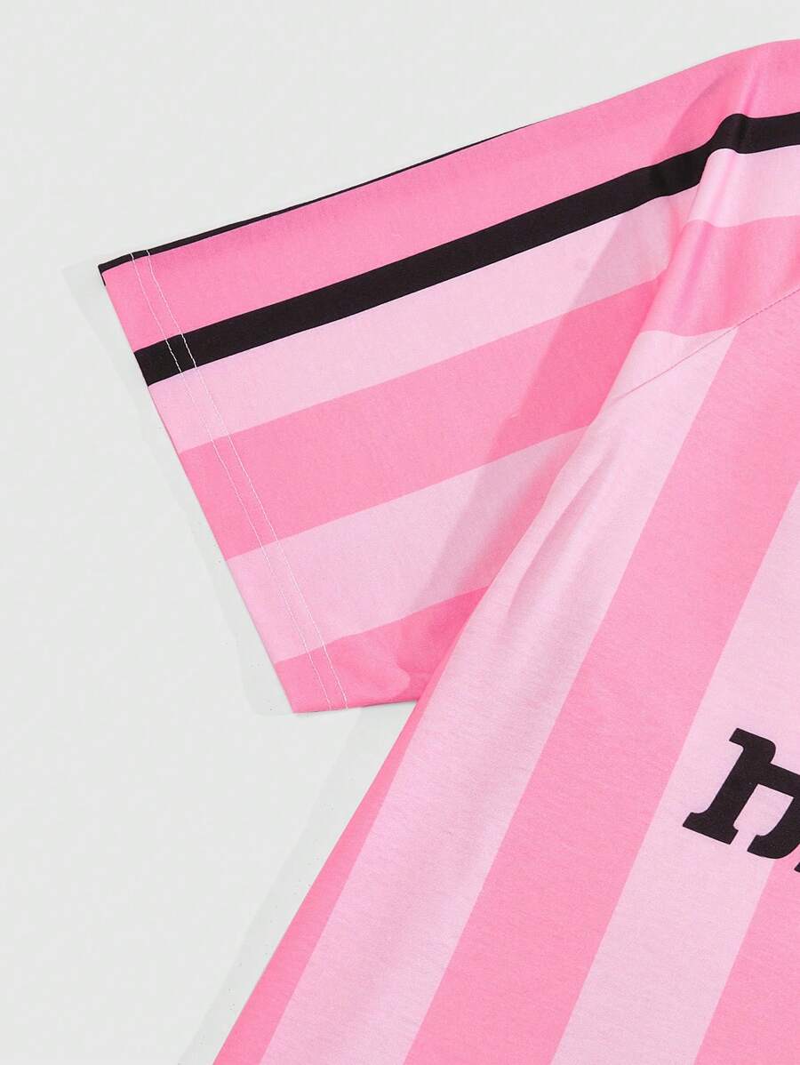 Street Life Herren Sommer Buchstaben Gestreift Bedrucktes Lässiges Rundhals Kurzarm Jersey T-Shirt, Schule, 2000er Jahre Stil
