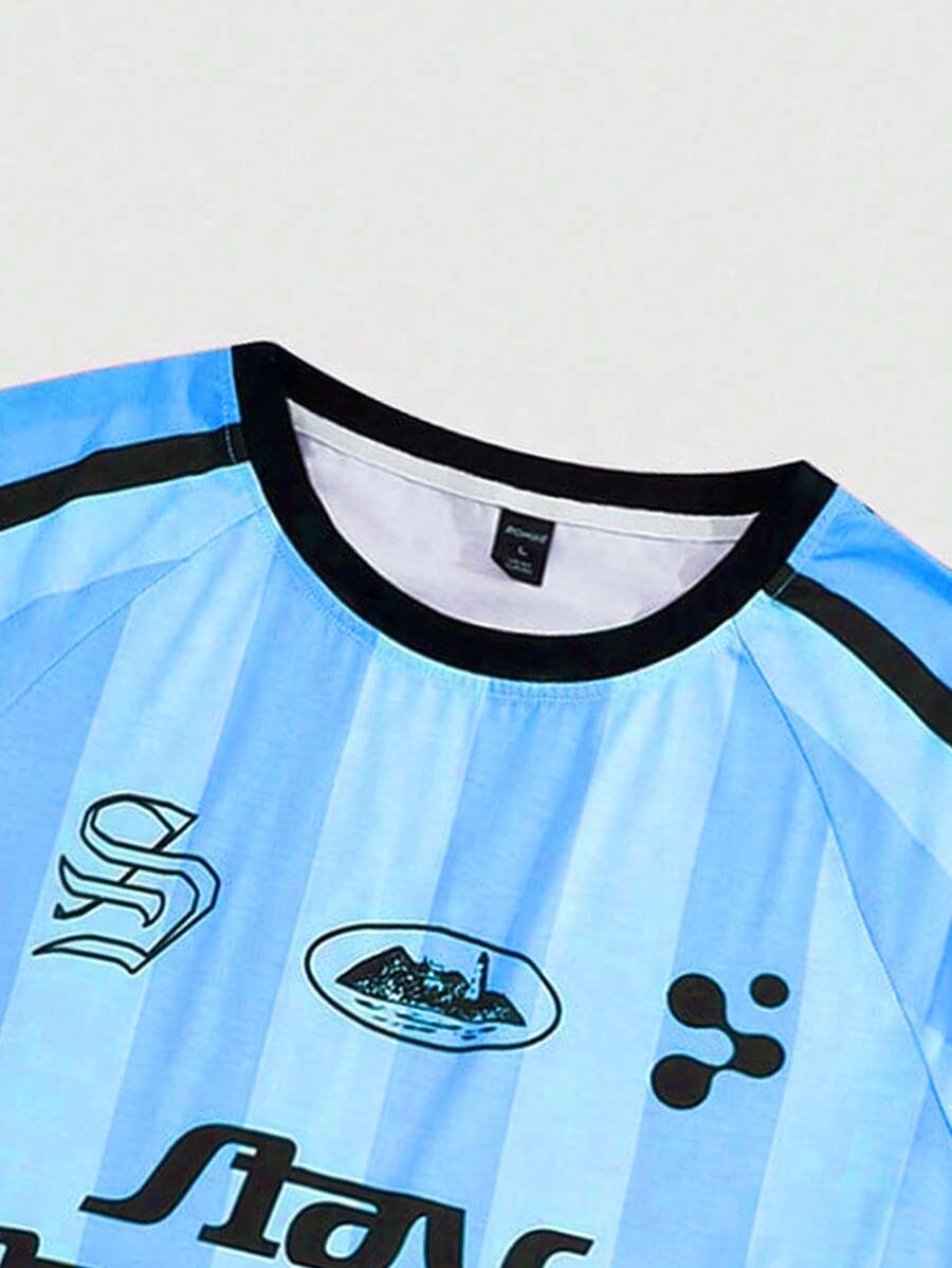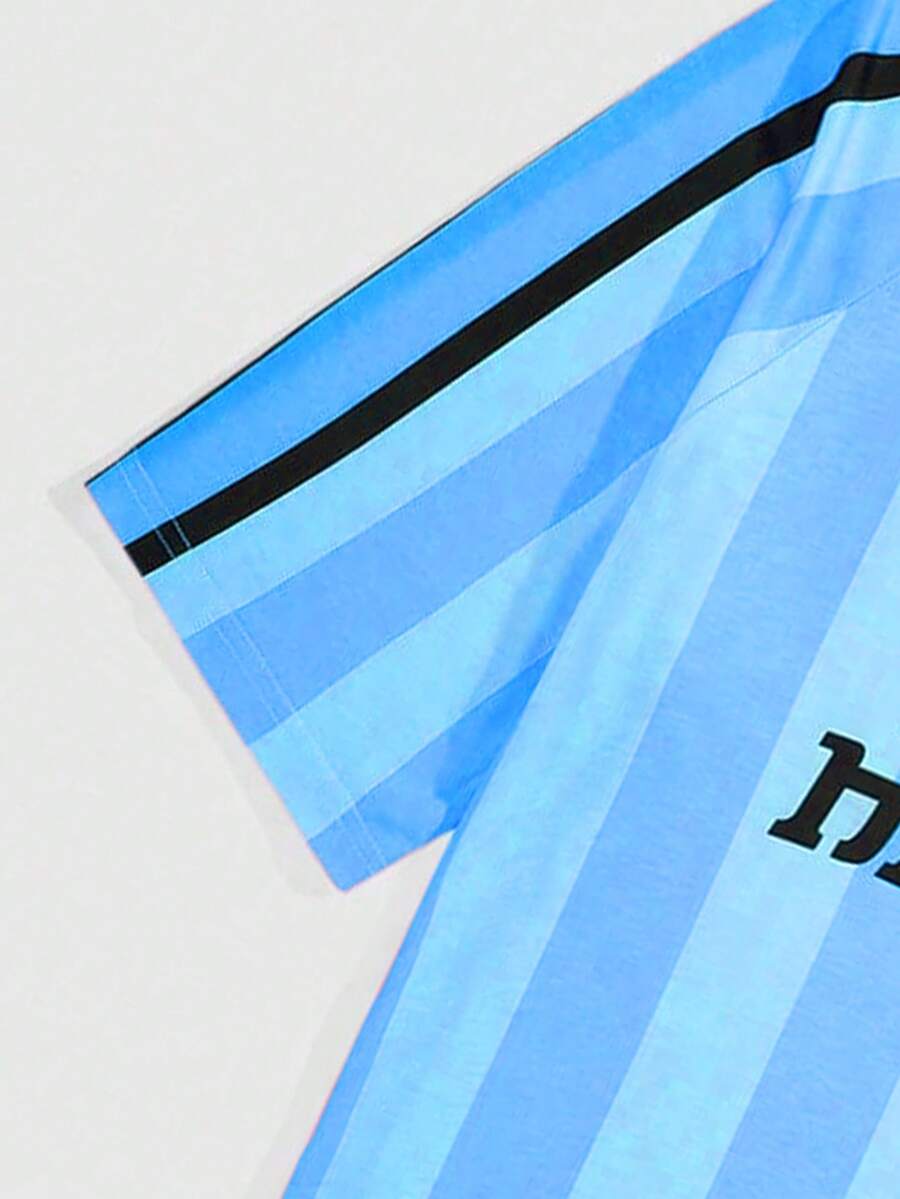 Street Life Herren Sommer T-Shirt mit Rundhalsausschnitt, Streifen und Buchstabenmuster, Kurzarm, Lässig Fußball-Shirt, Schule