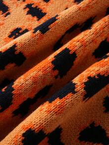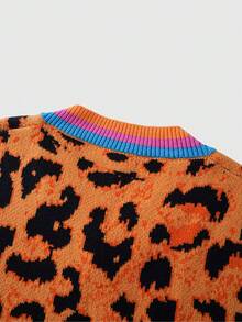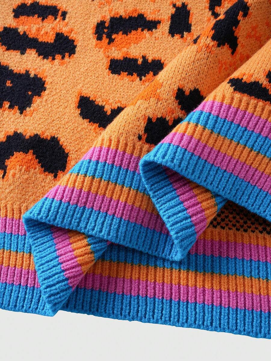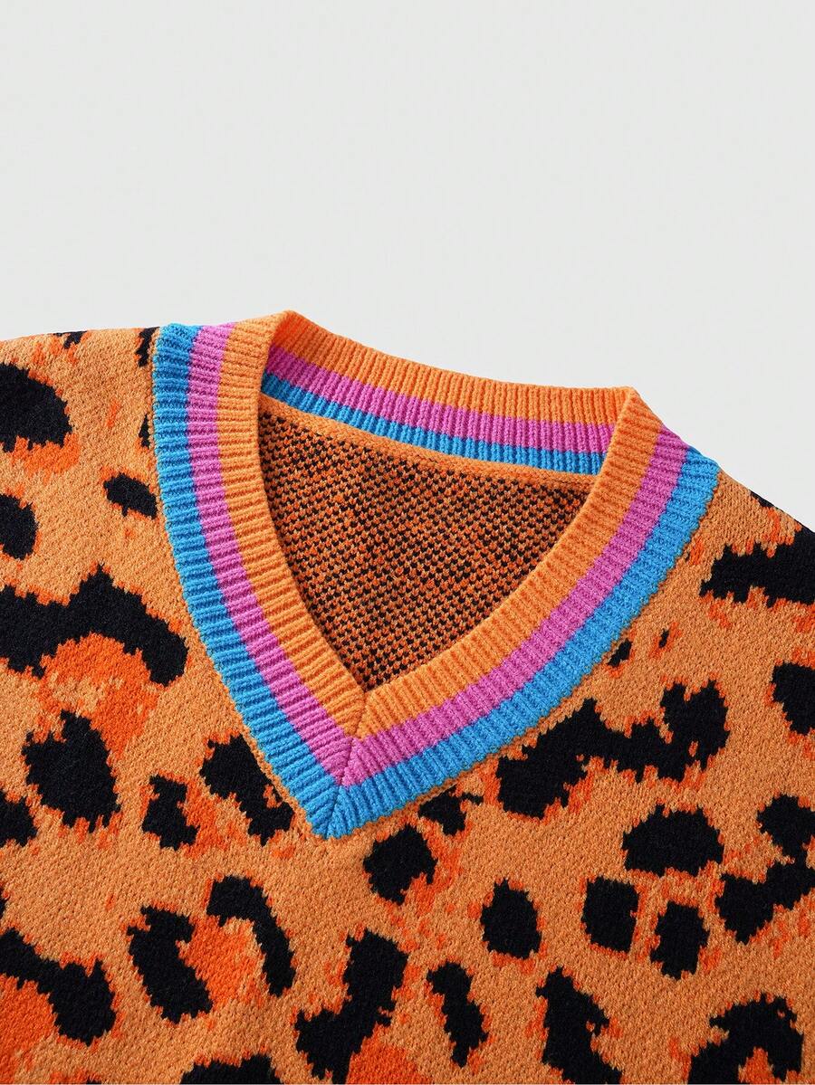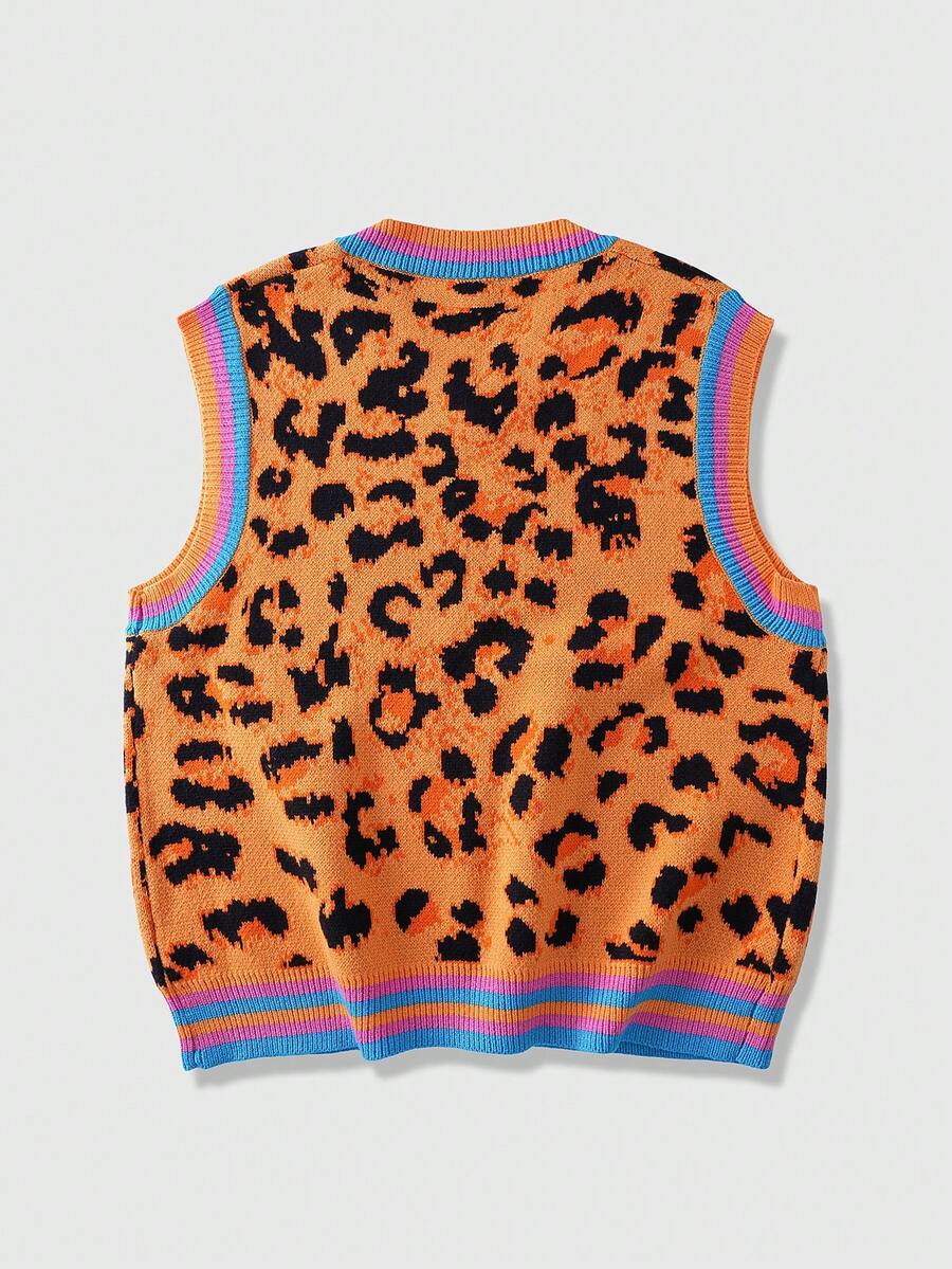 Street Life Herren V-Ausschnitt Kontrast-Farblos Ärmellos Lässiger modischer Leoparden-Muster Strickweste