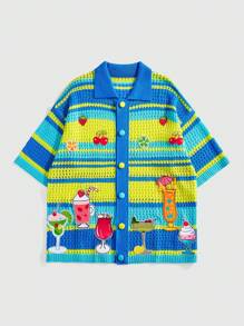Street Life Herren Shirt mit lockerer Strickstruktur und Stickmustern, Kurzarm