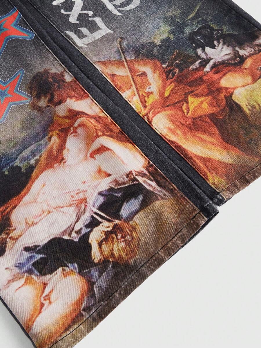 Street Life Herren Vintage Malerei Weitgeschnittene Jeans