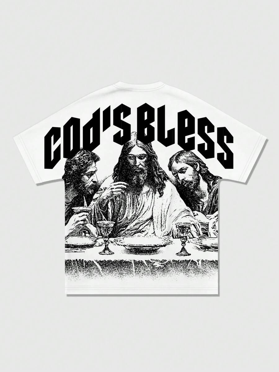 Street Life Herren Vintage Gemälde Fledermausärmel Muster Kurzarm T-Shirt