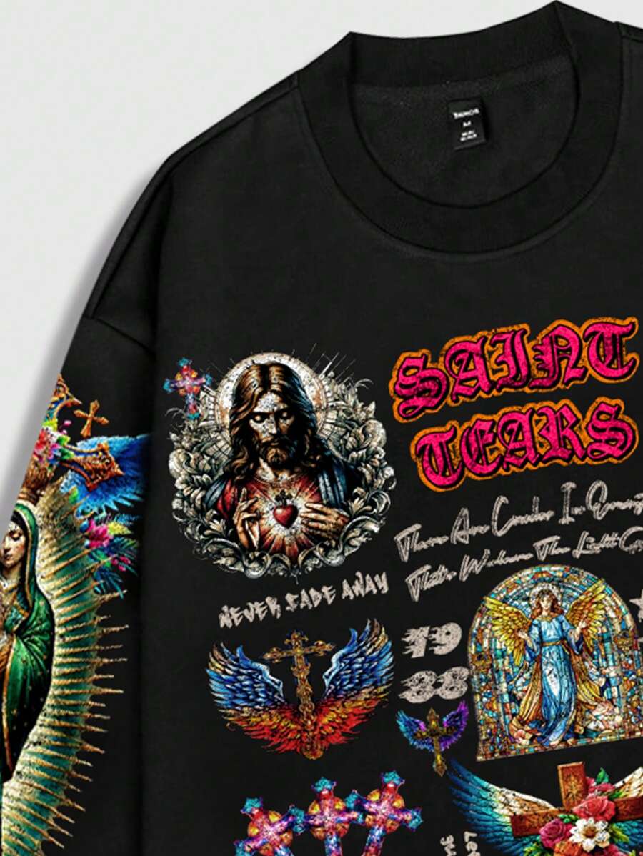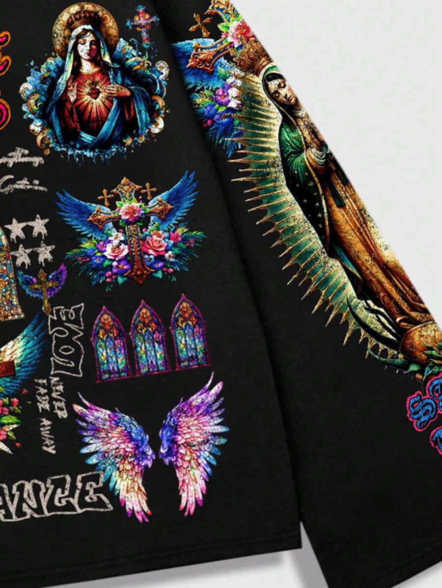 Street Life Herren T-Shirt mit Motiv der Jungfrau Maria, geeignet für Frühling, Sommer und Herbst