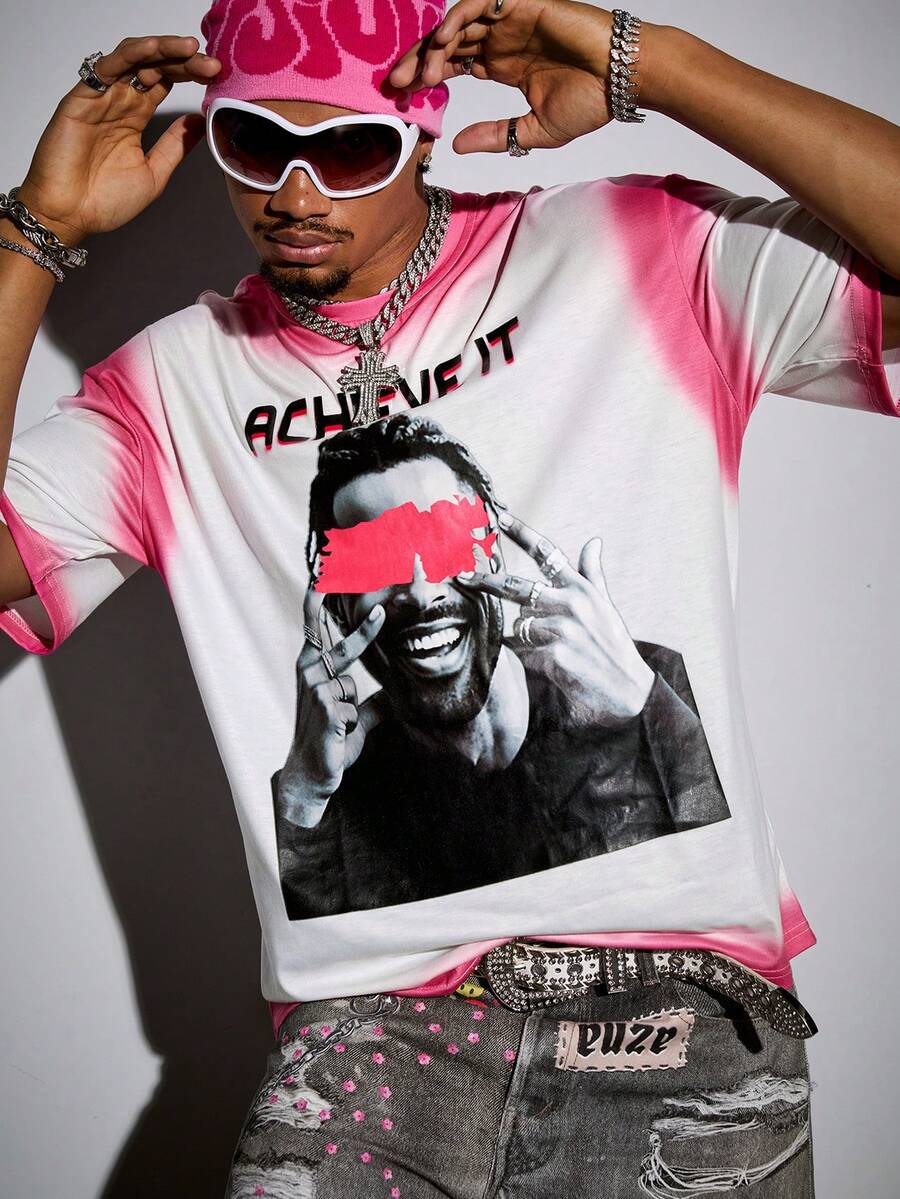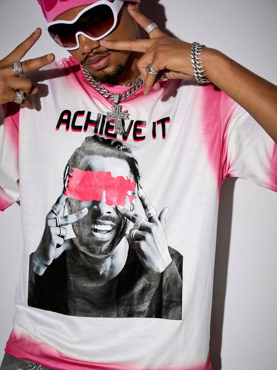 Street Life Herren Loose Fit T-Shirt mit Sprühfarben-Grafik, Buchstaben- und Zahlen-Muster, Kurzarm