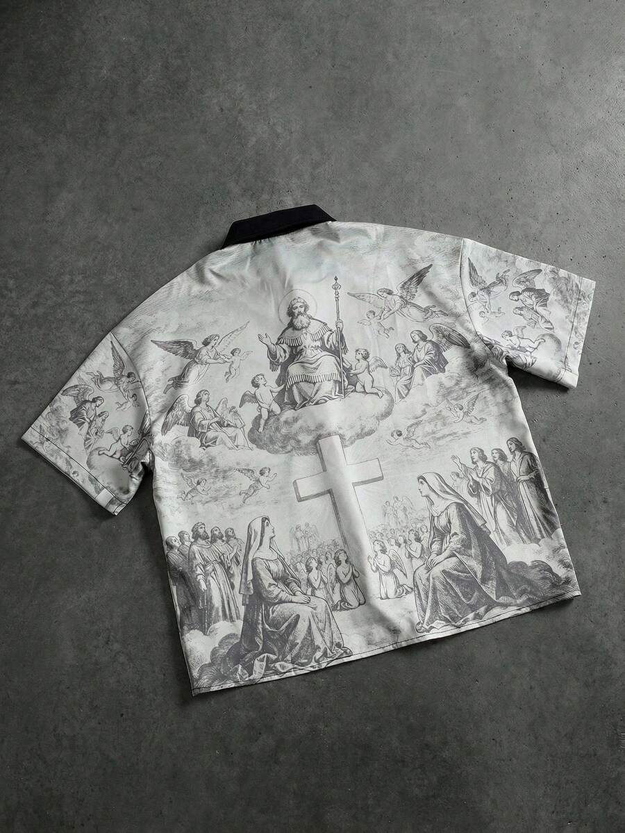 Street Life Herren Lässig Alltags Mode Street Angel Buchstaben Muster Kontrast Farbe Oversized Passform Hemd, Sommer