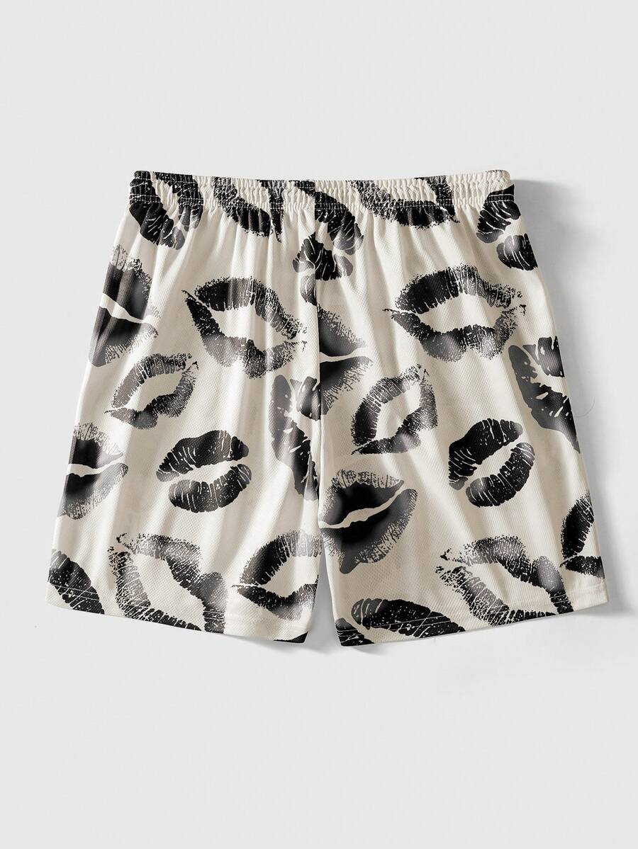 Street Life Valentinstag/Liebe/Paare/Herz/XOXO/Küsse/Umarmungen und Küsse/Sei Mein/Schatz/Baby/Kuss/Lippe/Herz/Amor/Engel/Rose/Lächeln/Schmetterling/Kirsche/Erdbeere/3D Rose/Blume/Schleife bedruckte Netzshorts für Herren, Frühling/Sommer