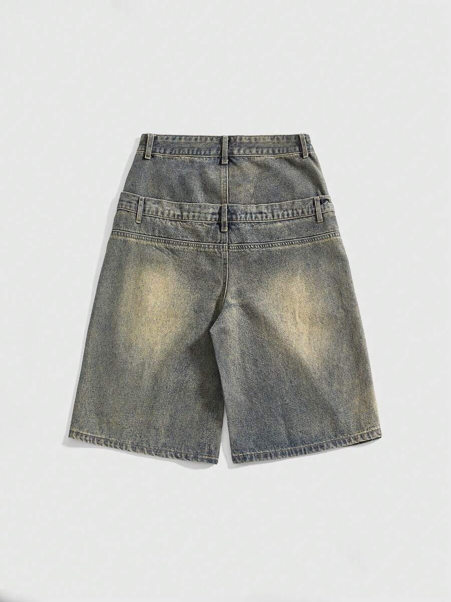 Street Life Y2K Streetwear Denim Shorts mit bestickter Tasche, taillennah, locker geschnitten