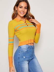 Pullover mit Streifen, Knöpfen und halber Knopfleiste