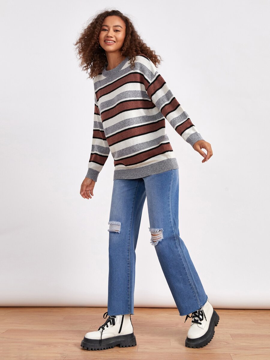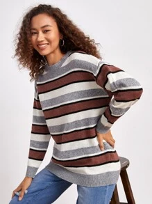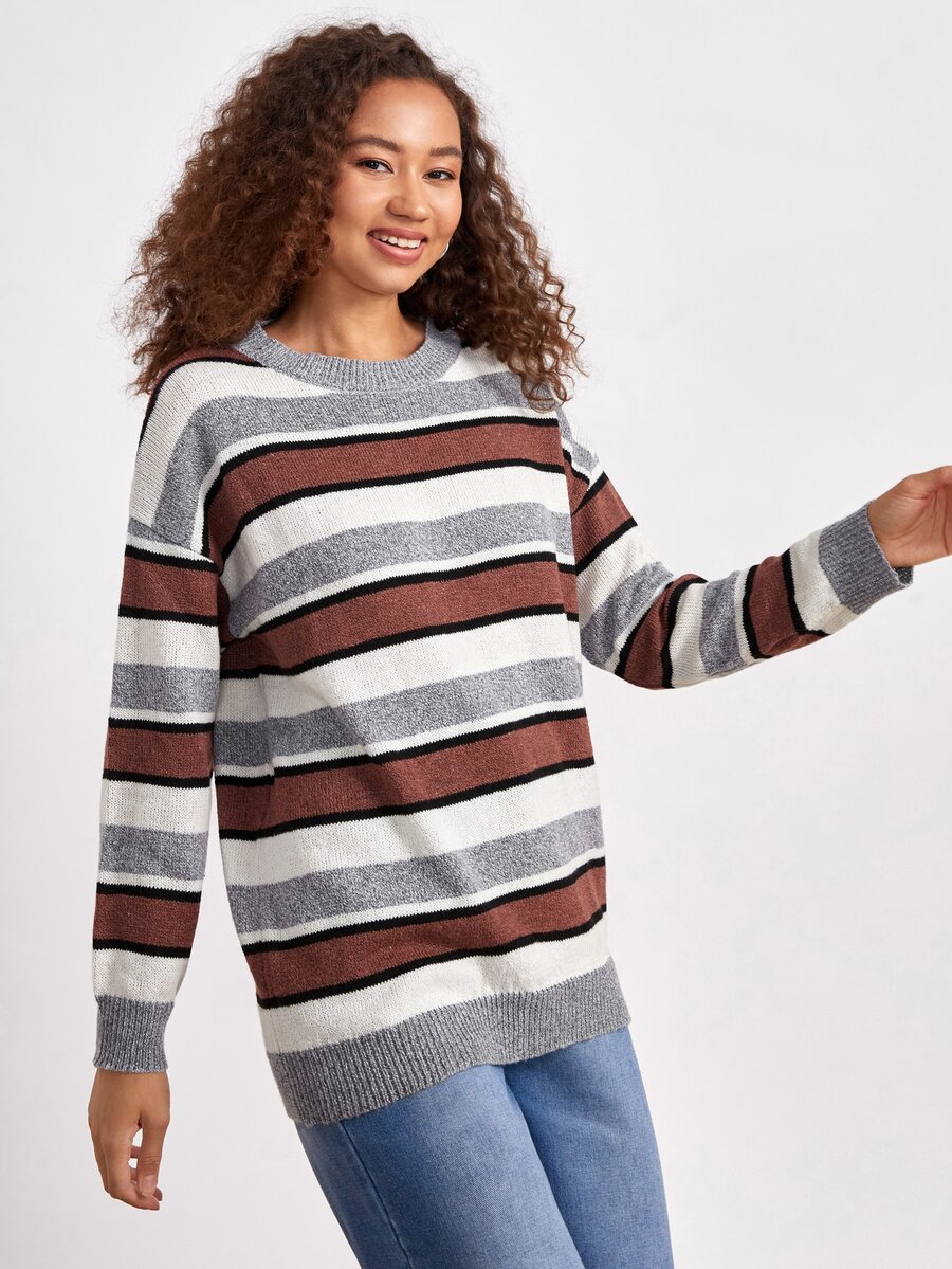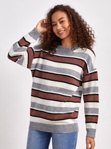 Pullover mit Streifen, sehr tief angesetzter Schulterpartie
