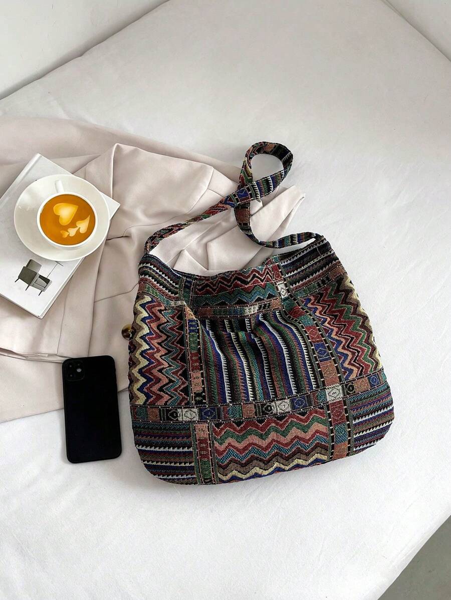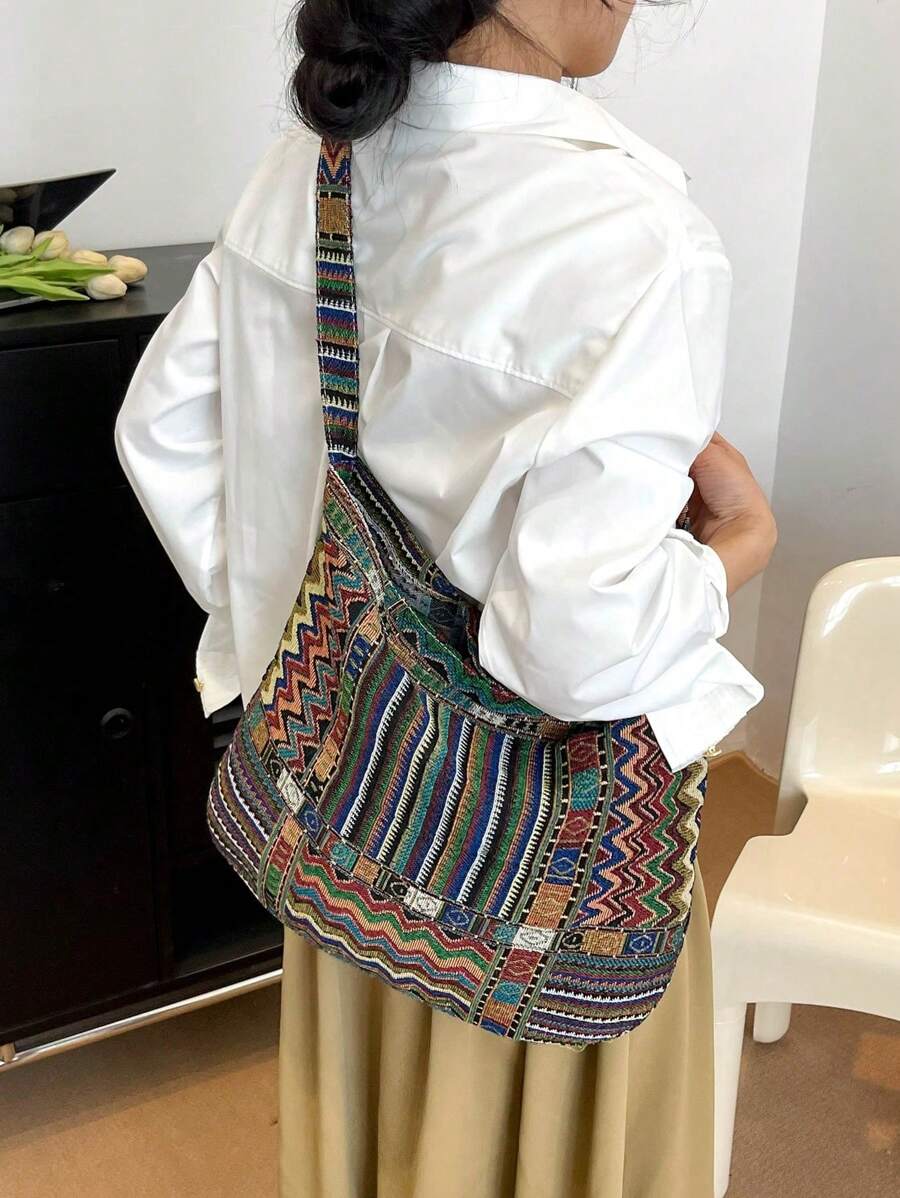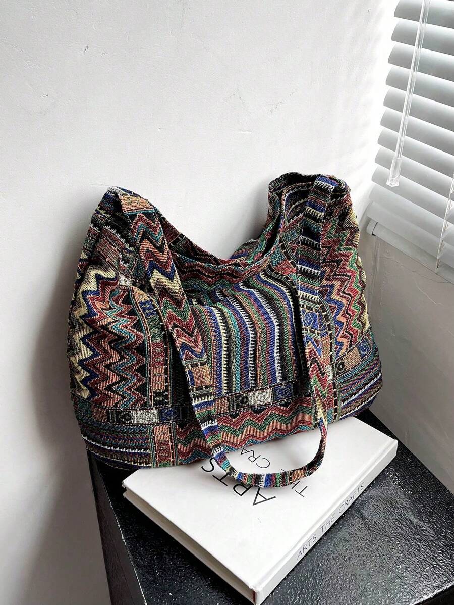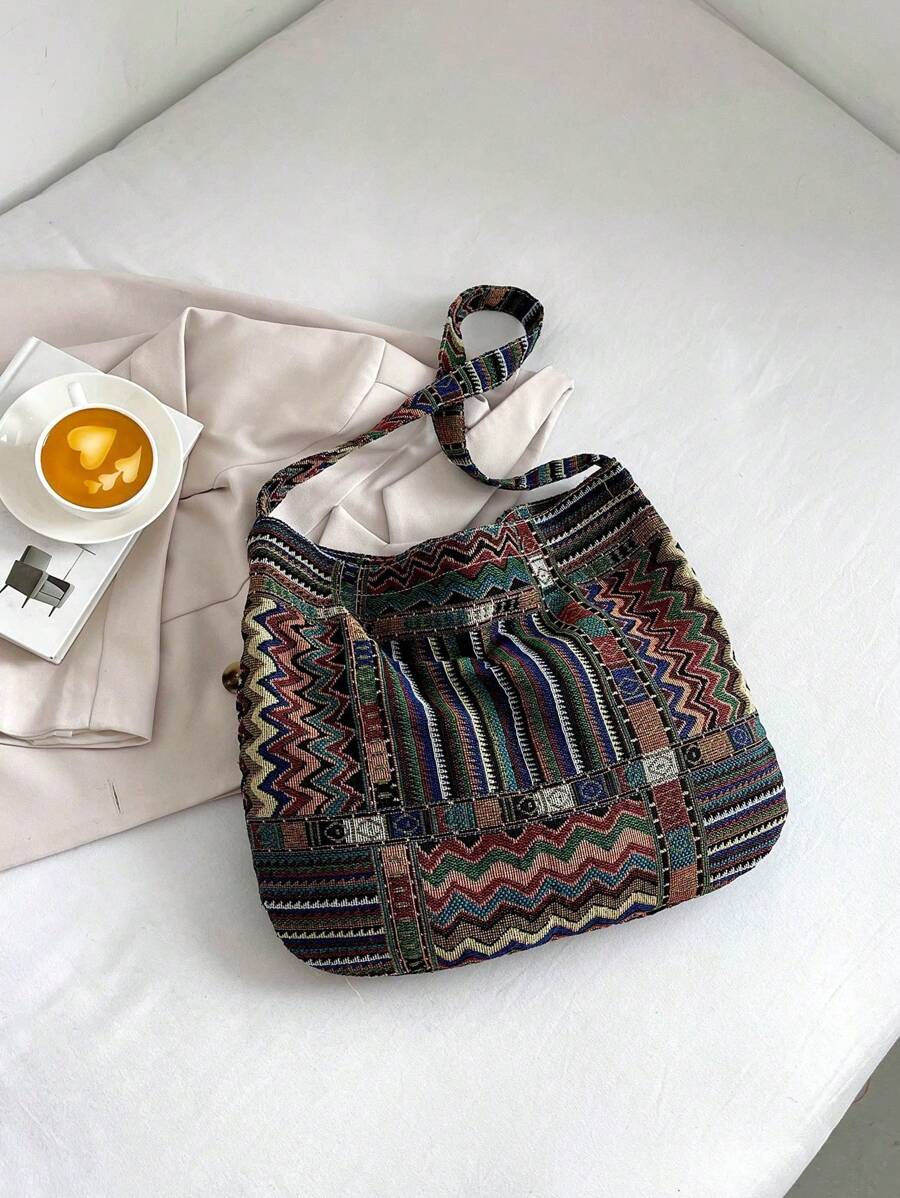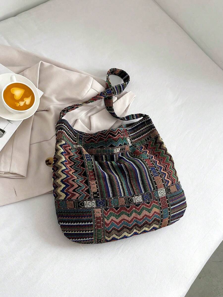 Gestreifte Leinentasche mit zufälligem Streifenmuster für die Schulter