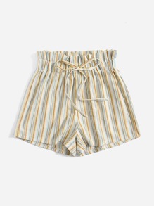 Shorts mit Streifen, Papiertasche-Taille