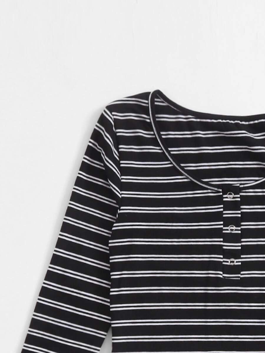 T-Shirt mit Streifen Muster, halber Knopfleiste