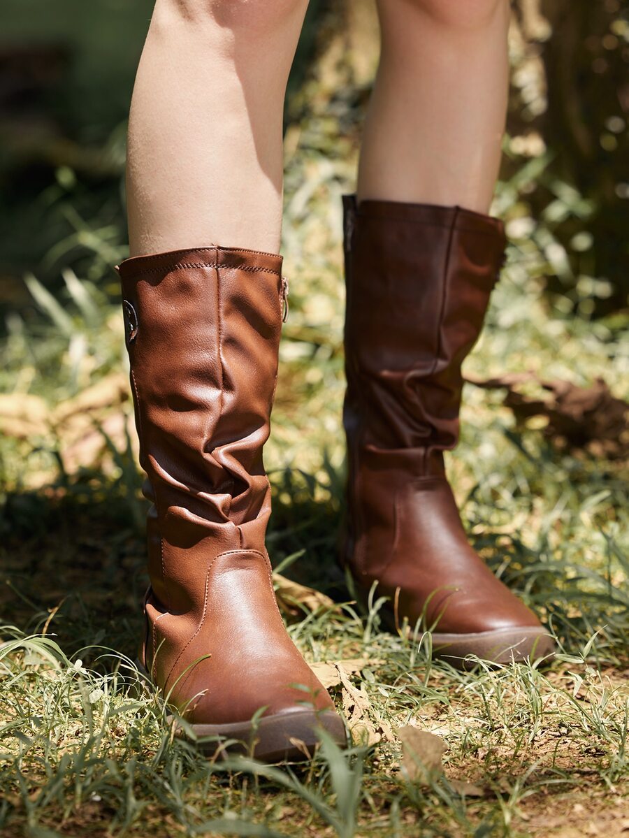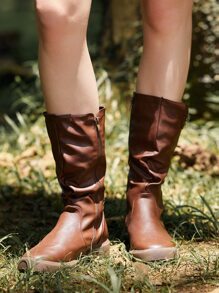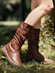 Slouchy Stiefel mit Nieten Dekor, seitlichem Reißverschluss