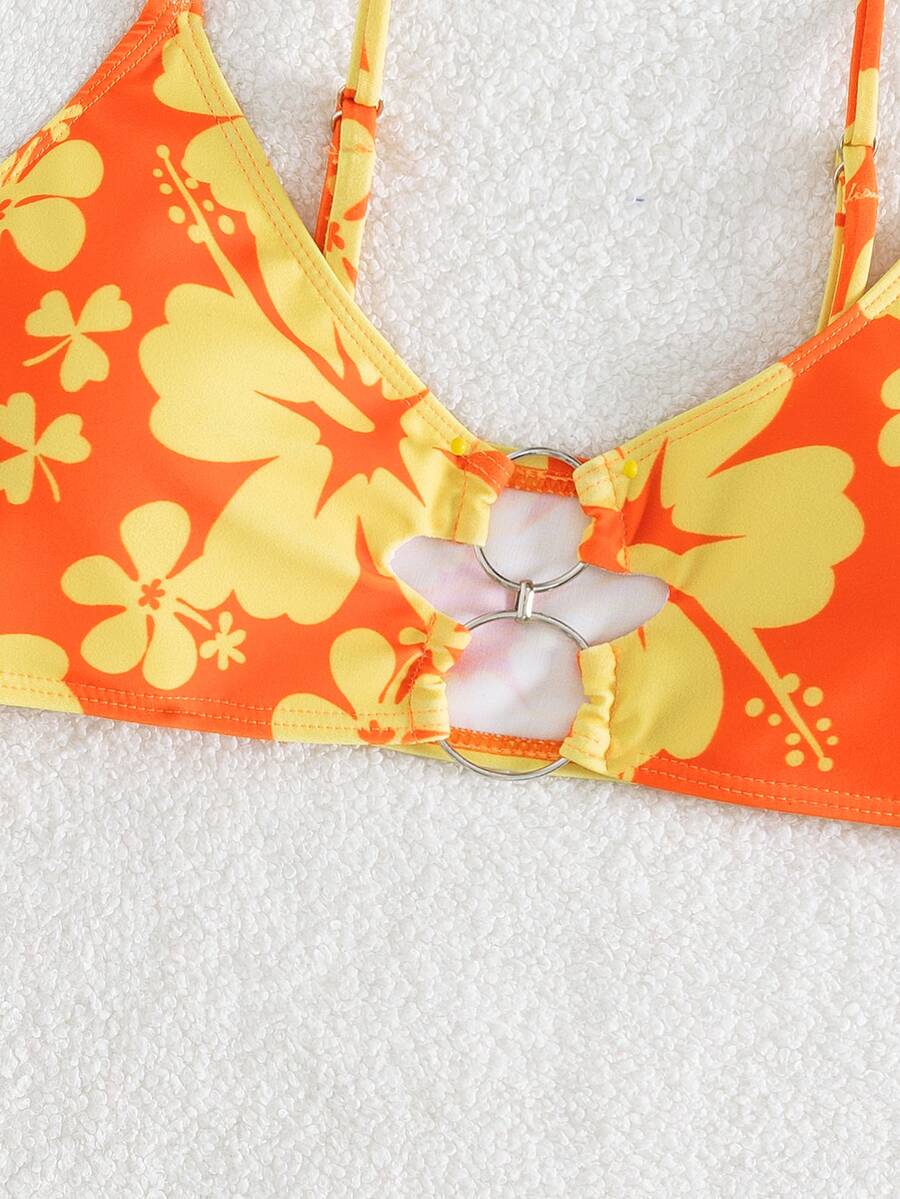 Sommerlicher Bikini-Oberteil mit Blume Muster und verketteten Ringen
