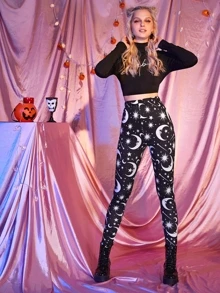 Leggings mit Sonne, Mond und Stern Muster