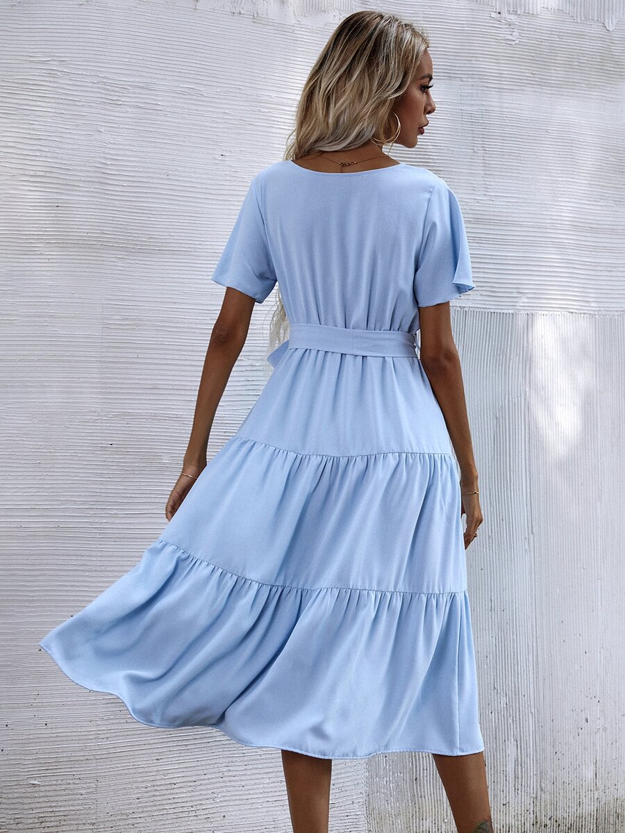 Kleid mit Wickel Design, Gürtel und Rüschen