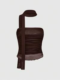 J-Fashion Damen Einfarbiges Camisole mit tiefem Ausschnitt und Hohldesign, modisches Drapiertes Ausschnittdesign