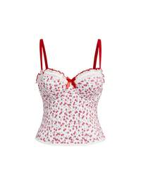 Kawaii Große Größen Frauen Vintage Cottagecore Kirschprint Spitzenbesatz Trägertop