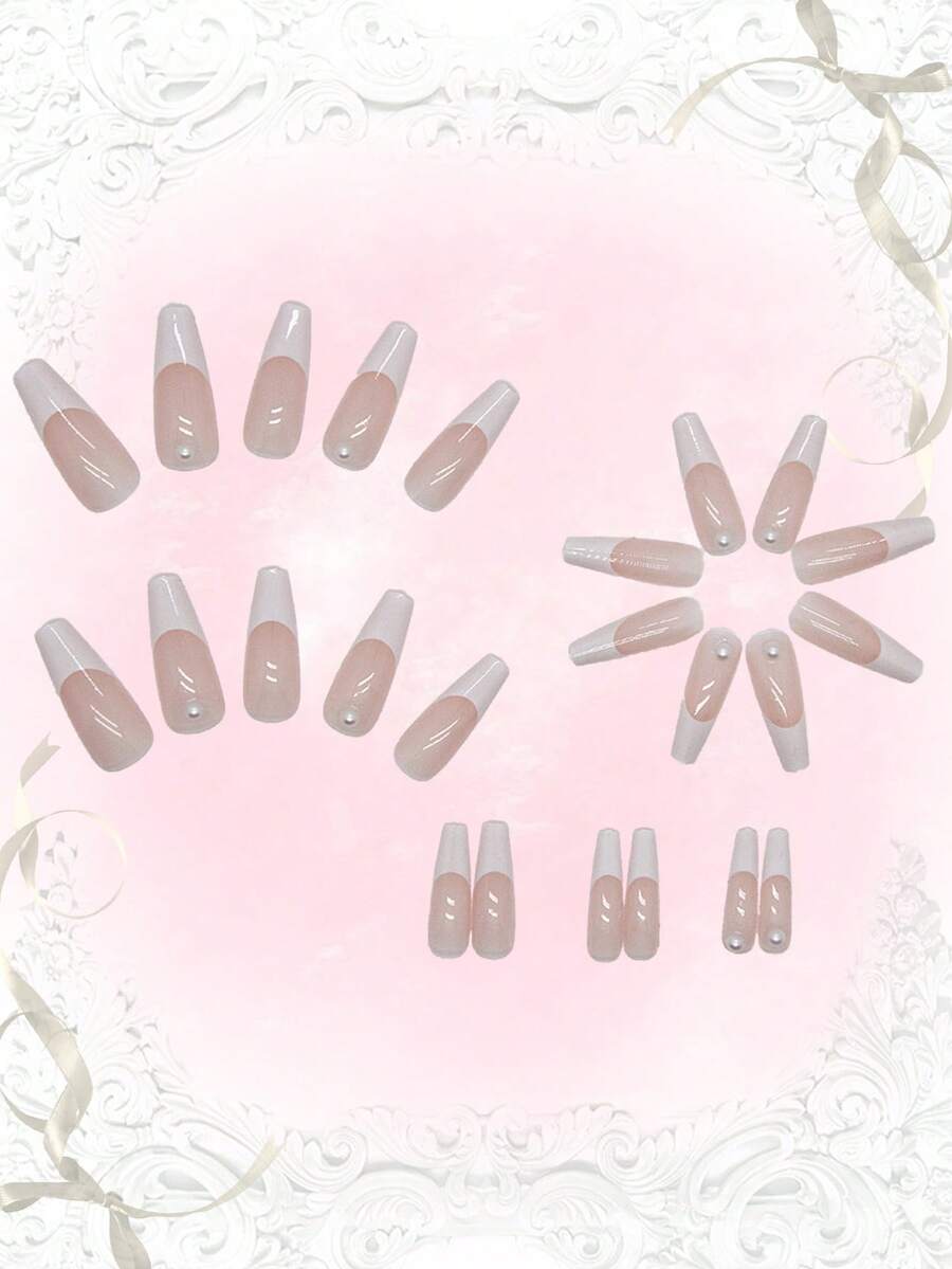 Sweetness 24 Stücke Lang Sarg Französische Stil Kunstnägel & 1 Stück Nagelfeile & 1 Blatt Band
