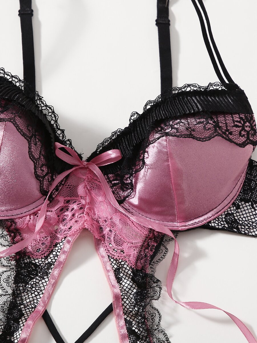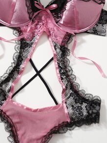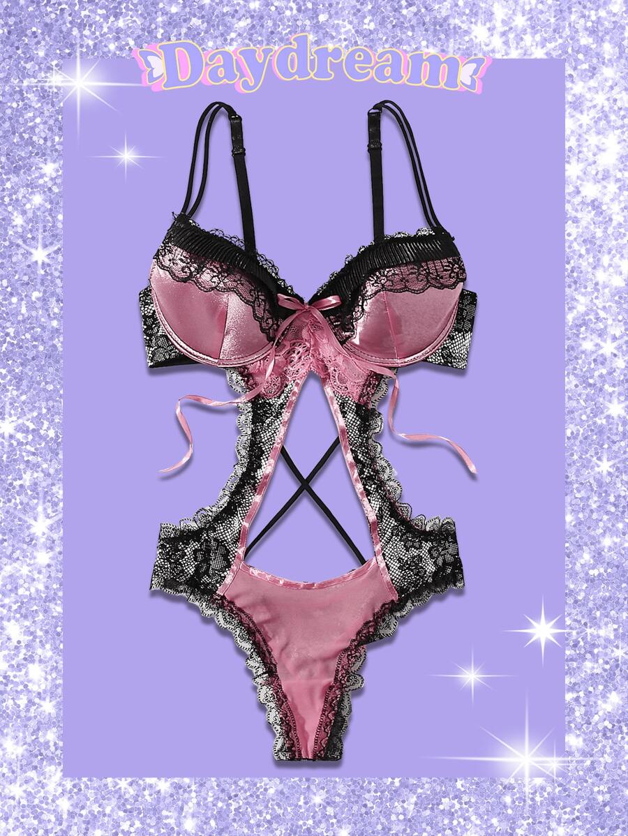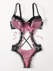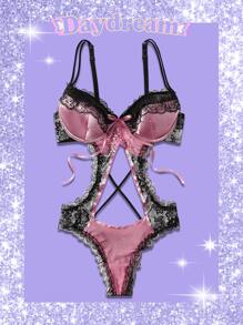 Sweetness Teddy Body mit Kontrast Spitzen, Cut-Out