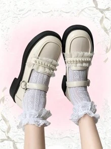 Sweetness Frauen Schuhe mit Kunstperle Dekor, Rüschenbesatz, Flatform Mary Jane mit Preppy Outdoor Flatform