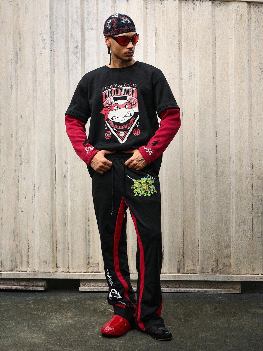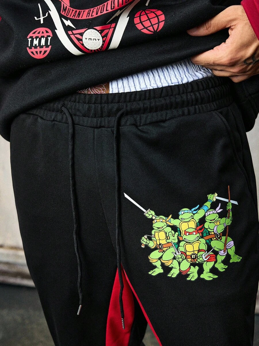 TEENAGE MUTANT NINJA TURTLES X ROMWE Herren bequeme lässige Mode schwarze & rote ausgestellte Jogginghose, Herbst/Winter