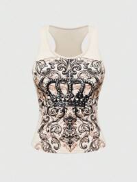 ROMWE Avant Y2K Strass Krone Crop Top für Frauen