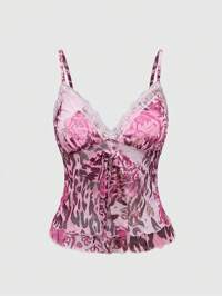J-Fashion Y2K Vintage Blumen- und Leoparden-Muster Spitzenbesatz Schleife Enges Trägertop für Damen
