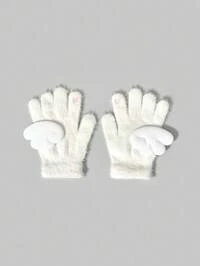 Anime Weiße Flügel-Herz Strass Fellhandschuhe, vielseitig einsetzbar für Pendeln, Lässig, Outdoor, warmes Accessoire für Herbst/Winter