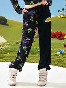 Teletubbies X ROMWE Damen Lässig Cartoon Muster Tunnelzug Taille Loose Jogginghose