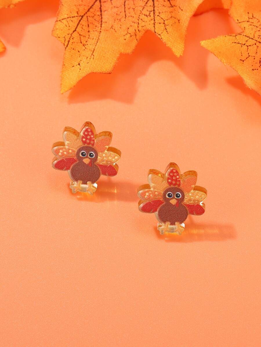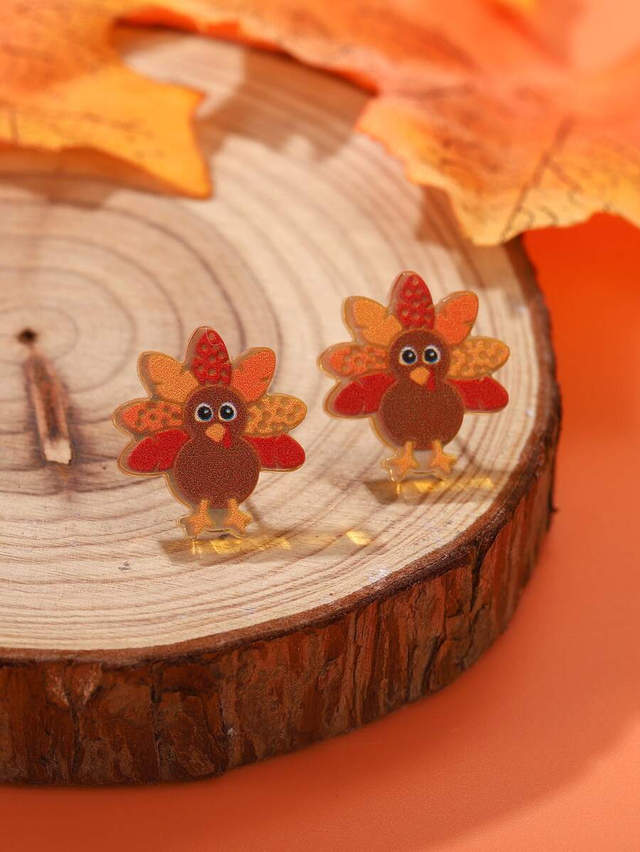 Ohrstecker mit Erntedankfest Cartoon Hähnchen